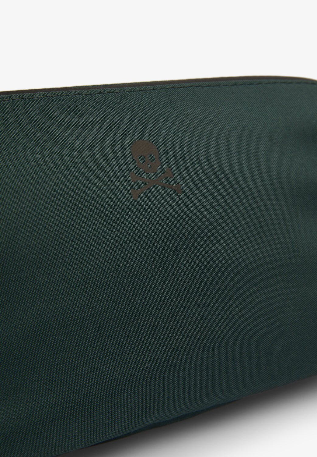 Technical toiletry bag. Zip fastening and inner pocket. Adjustable side straps. Front skull detail.