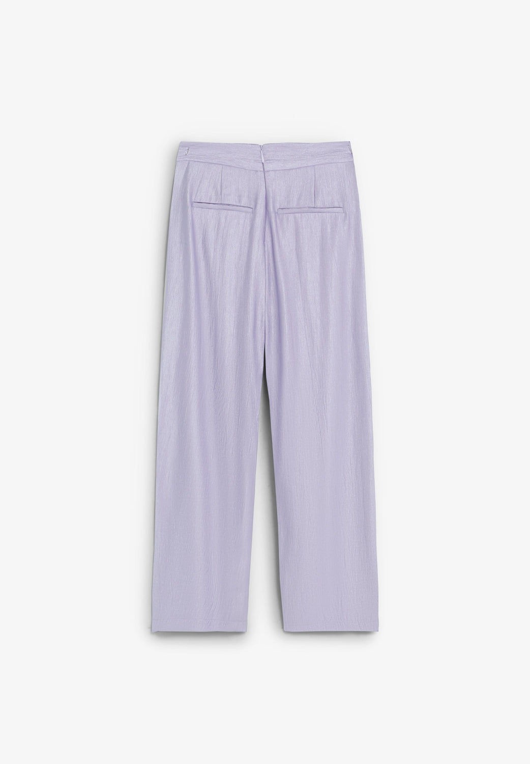 Jacquard trousers in satin fabric. Slim fit. Scalloped detail on front. Back zip fastening. Back welt pockets.
