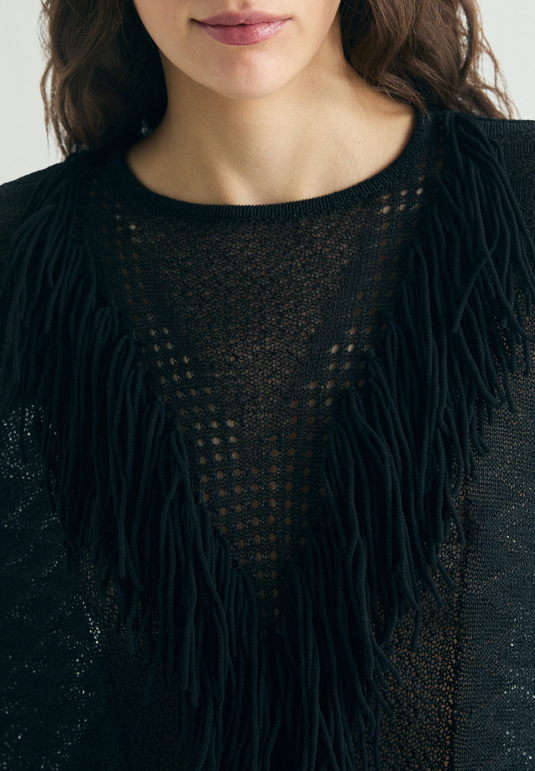 OPENWORK JUMPER WITH FRINGES