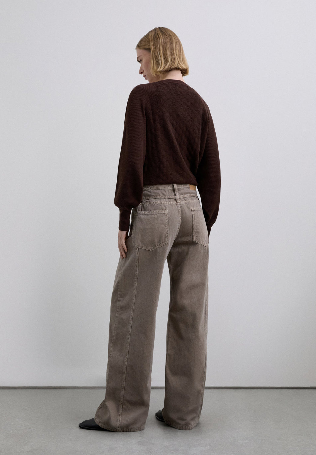Jeans made of slightly stretch BCI cotton. Regular fit, straight cut. Zip and button fastening. Seams detail. Belt loops and drawstring detail. Front and back pockets.
