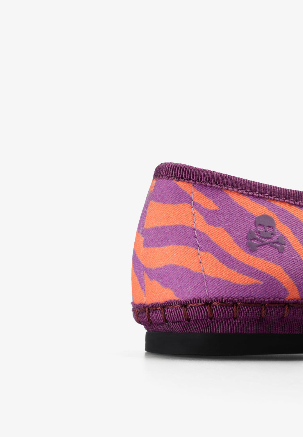Ballet flats made of cotton. Animal print. Contrast stitched edges. Adjustable buckle closure. Skull detail on the heel. Combined flat sole.