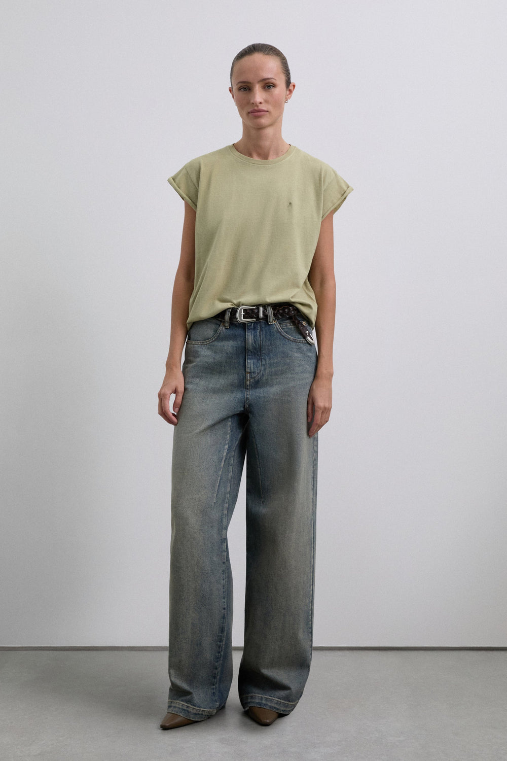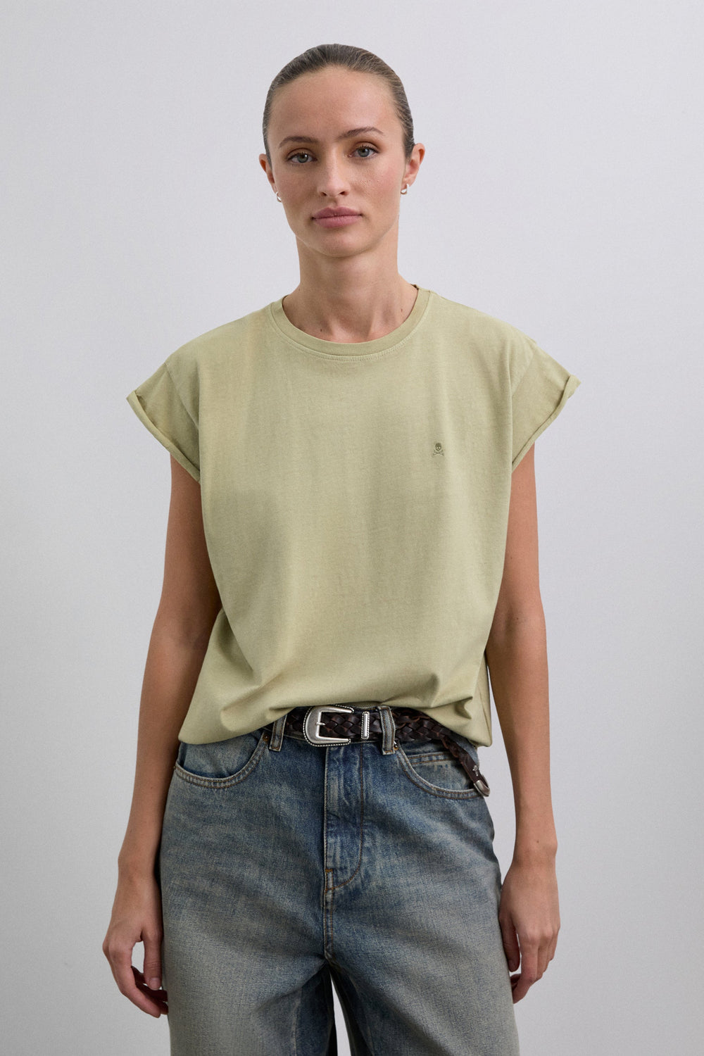 T-shirt made of 100% organic cotton. Regular fit, round neck and sleeveless. Matching embroidered logo detail on the chest.