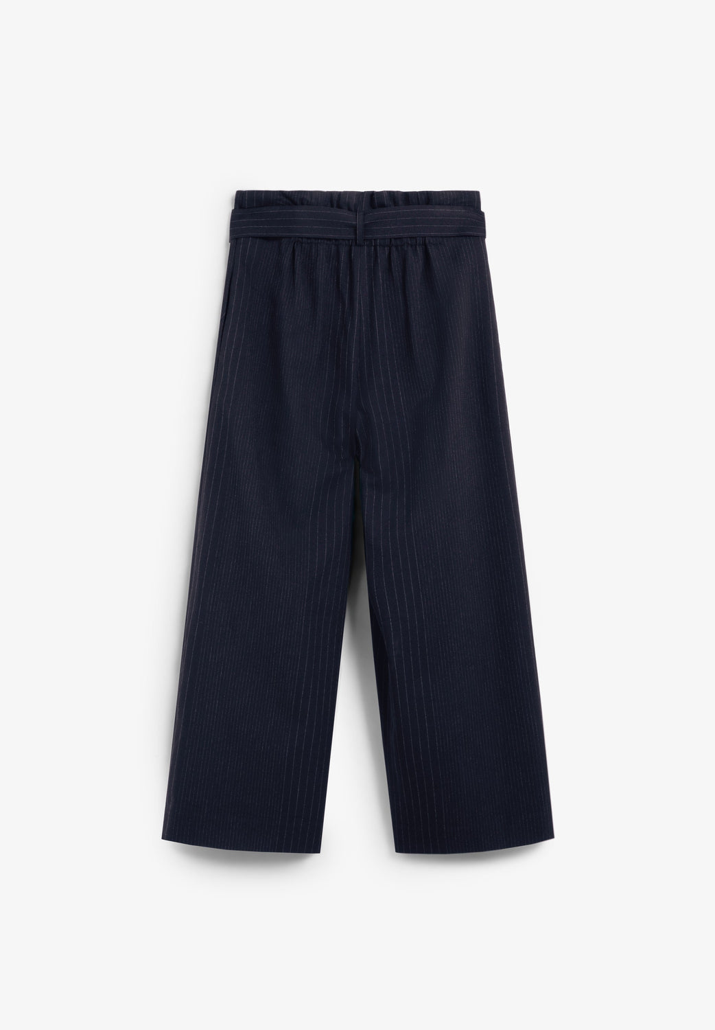Culottes. High cut. Belt loops at the waist. Zip fastening concealed by a flap, with hook and eye and button. Two side pockets.