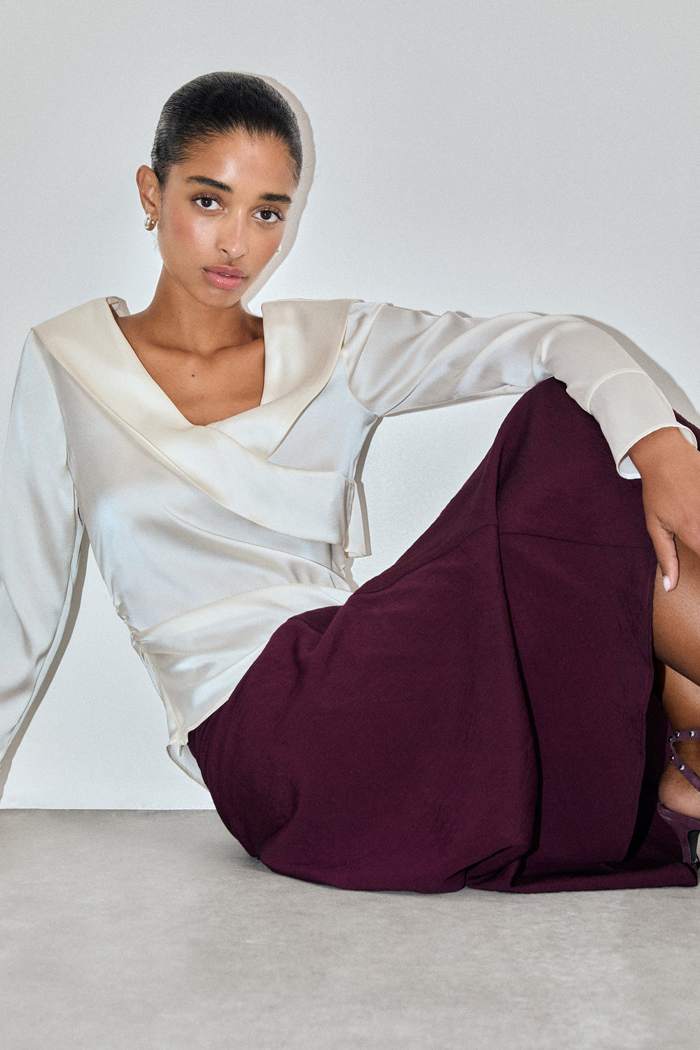 SATIJNACHTIG ASYMMETRISCH OVERHEMD
