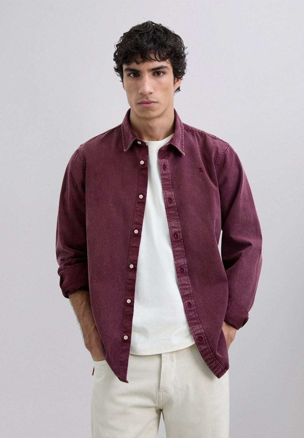 Shirt or overshirt made of 100% cotton. Regular fit, collar with buttons and button fastening. Long sleeves with buttoned cuffs and embroidered skull.