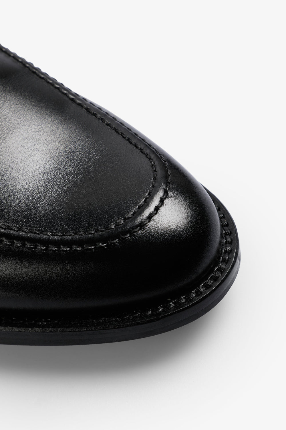 Smart black loafers with penny strap. Upper made of 100% high quality leather with a shiny finish. Leather insole. Rounded, pointed-shaped last. Leather sole stitched to the upper.