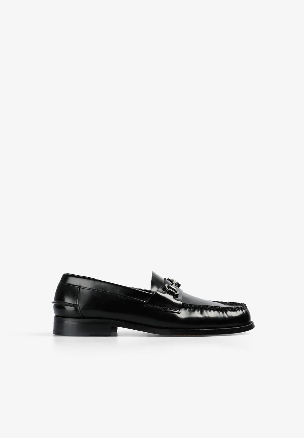 Loafers shoes made of 100% cowhide leather. Metal buckle on instep. Matching sole.
