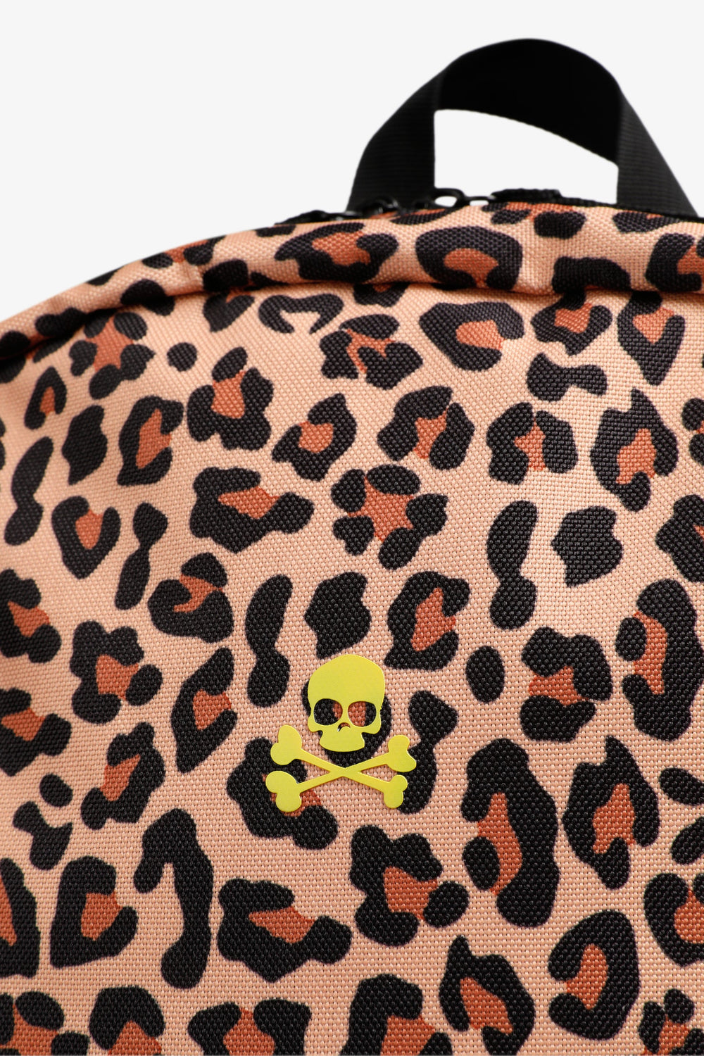 Backpack with contrast skull on the pocket. Made of technical fabric Animal print. Zip fastening. Back straps. Top handle. Front zipped pocket. Rubberised logo patch detail with contrast logo on front.