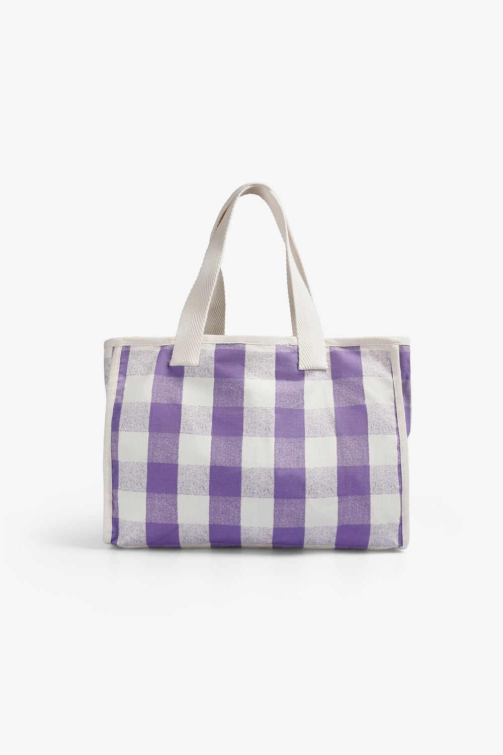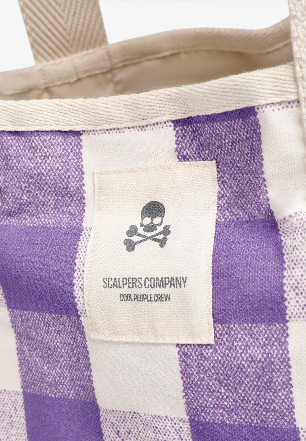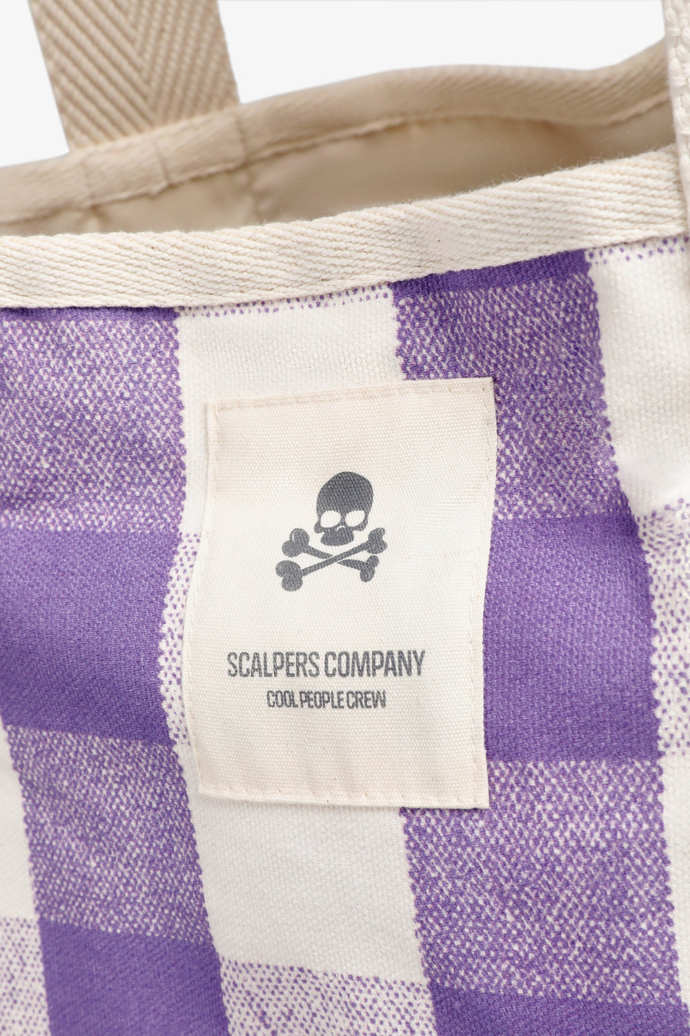 Tote bag made of 100% cotton. Double strap. Front label with logo and skull. Checked print
