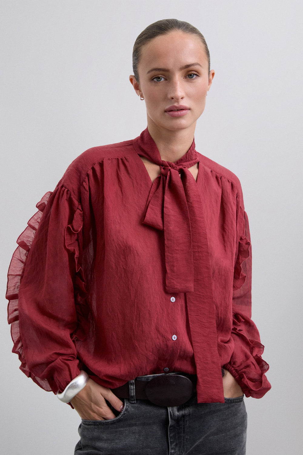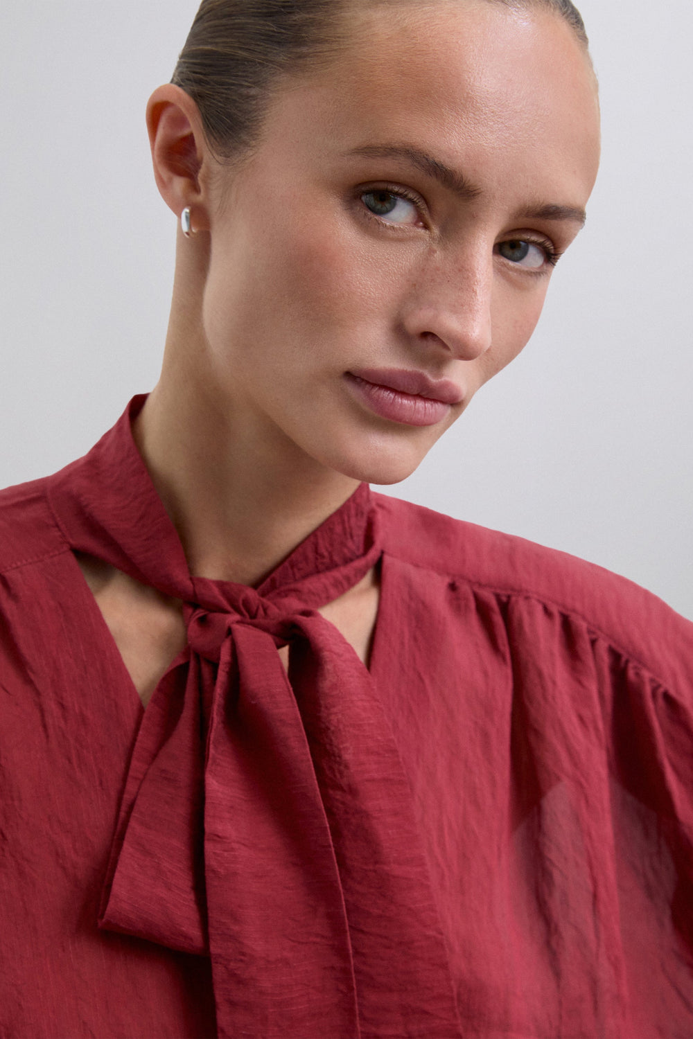 GATHERED BLOUSE WITH TIE DETAIL