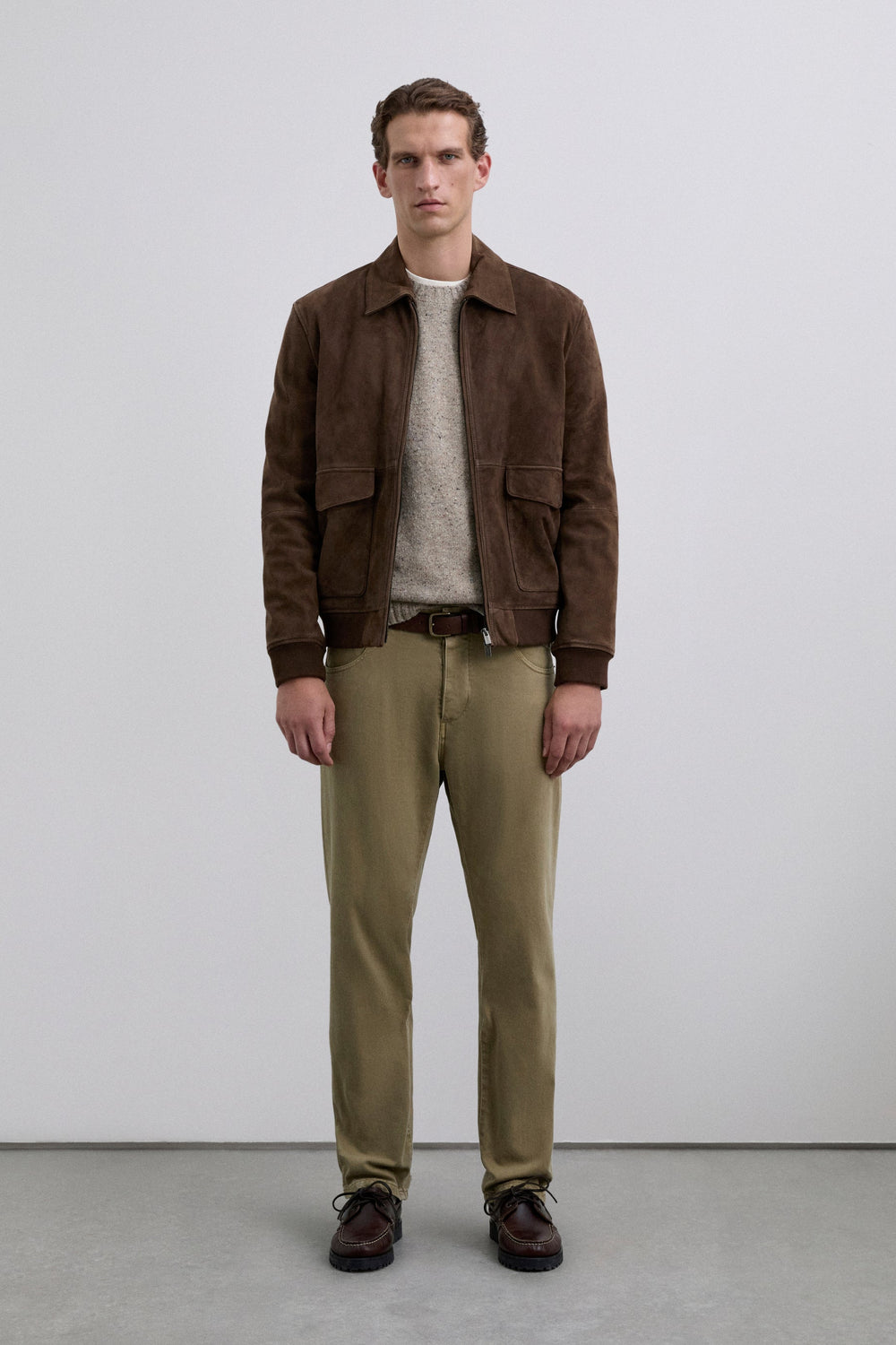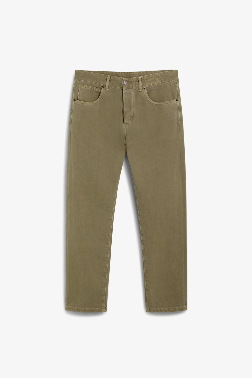 Straight trousers made of 100% cotton. Front and back pockets. Button and zip fastening. Belt loops at the waist. Logo label details on the belt and pocket.