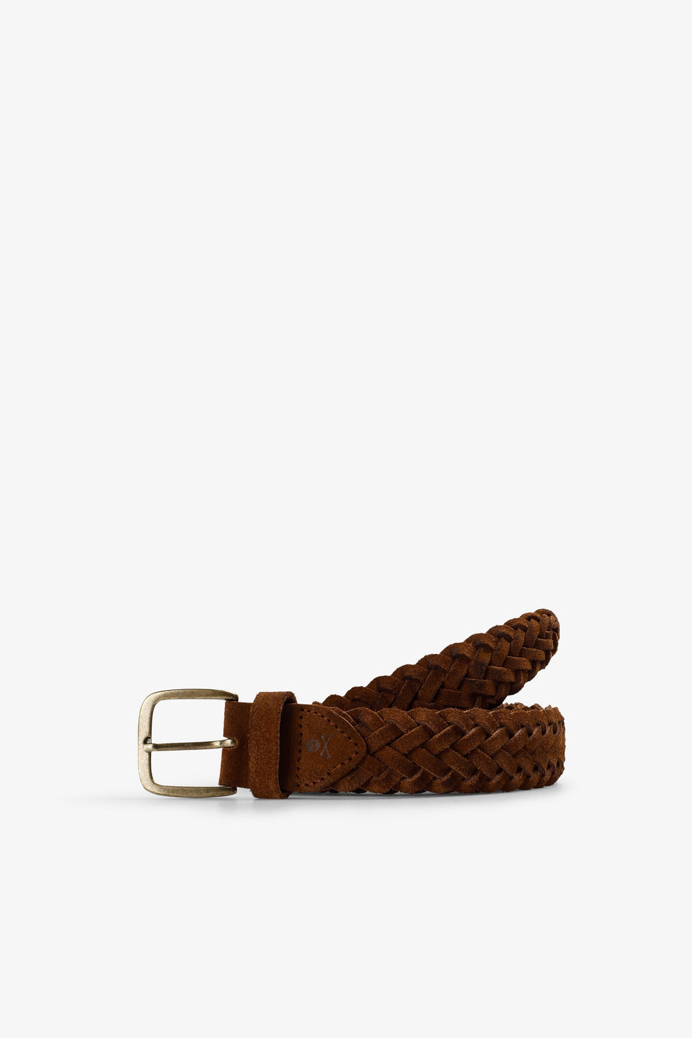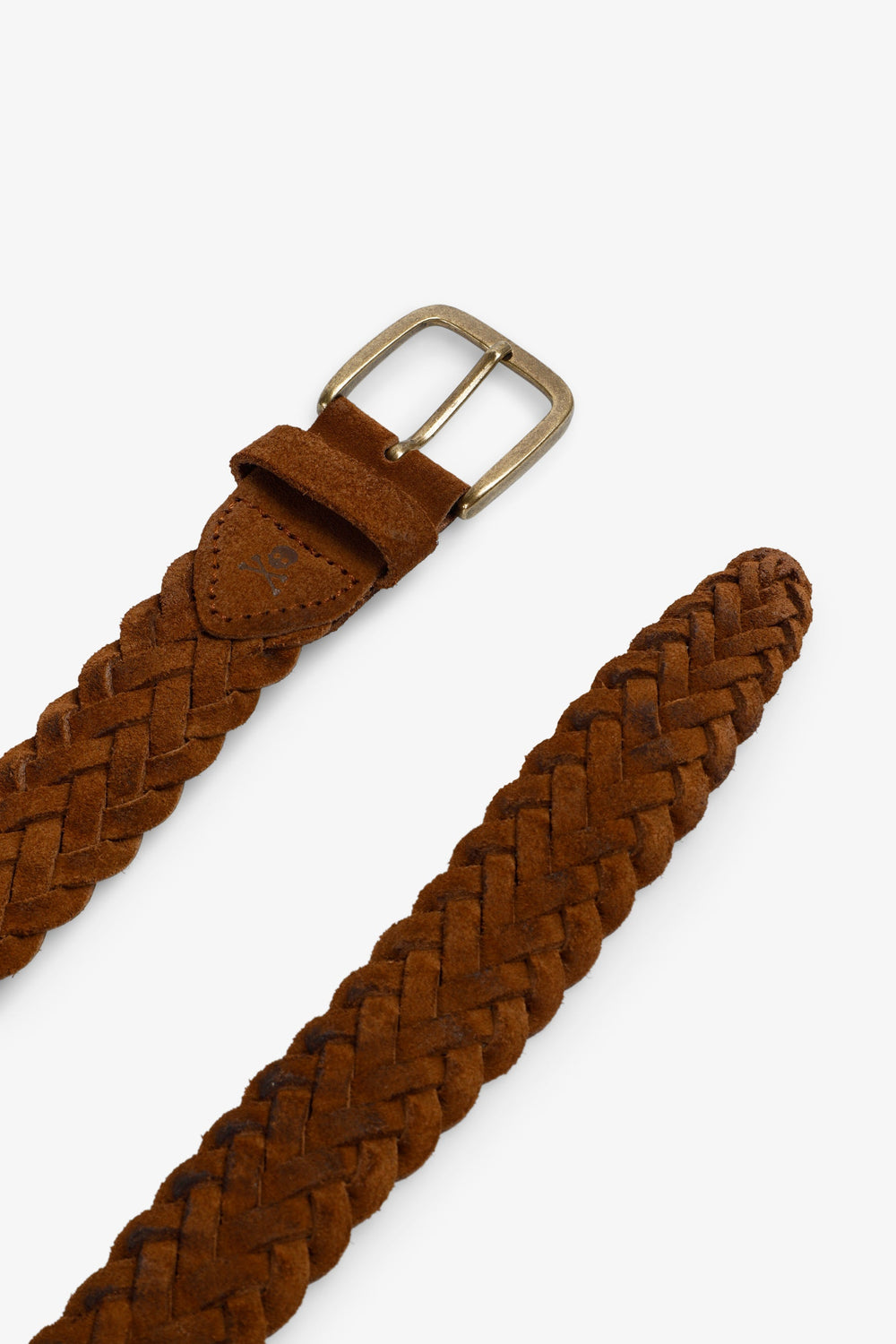 Belt made of 100% cowhide leather. Suede. Metal buckle. Braided design. Logo detail.