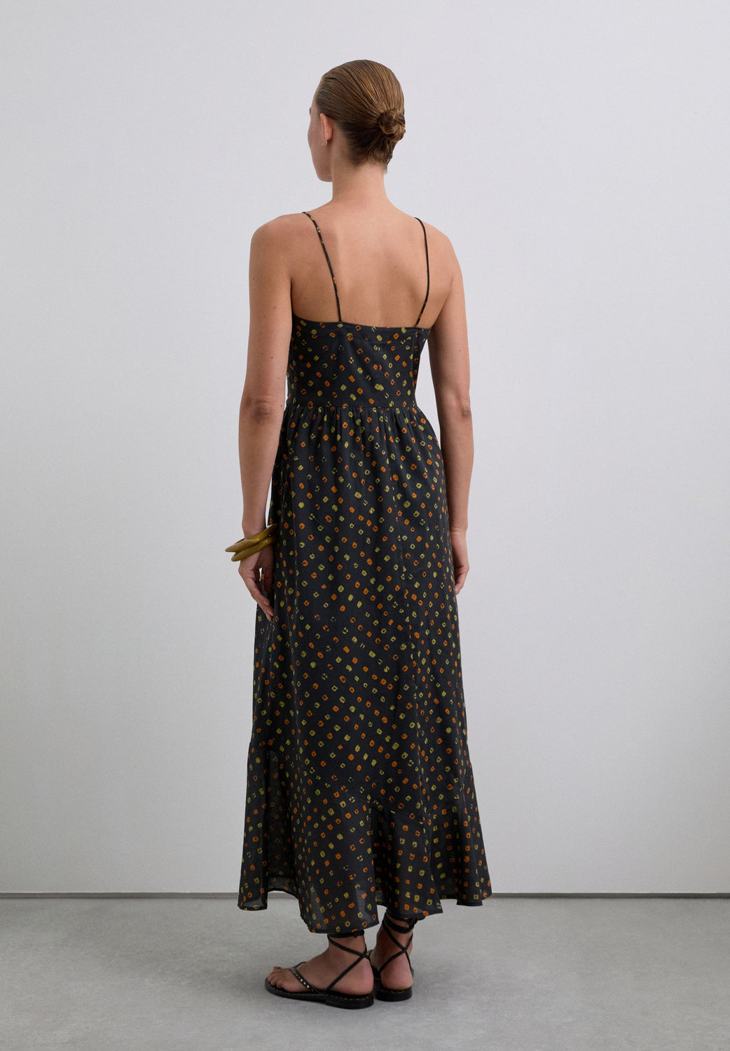 Printed dress made of 100% BCI Cotton fabric with print. Regular fit and thin straps.