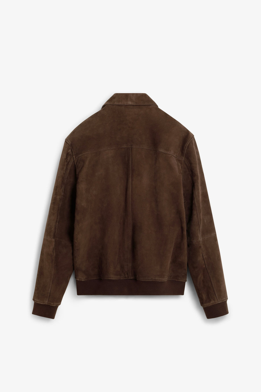 Jacket made of 100% goat suede. Double front zip fastening. Ribbed cuffs and hem. Two front pockets with flap fastening.