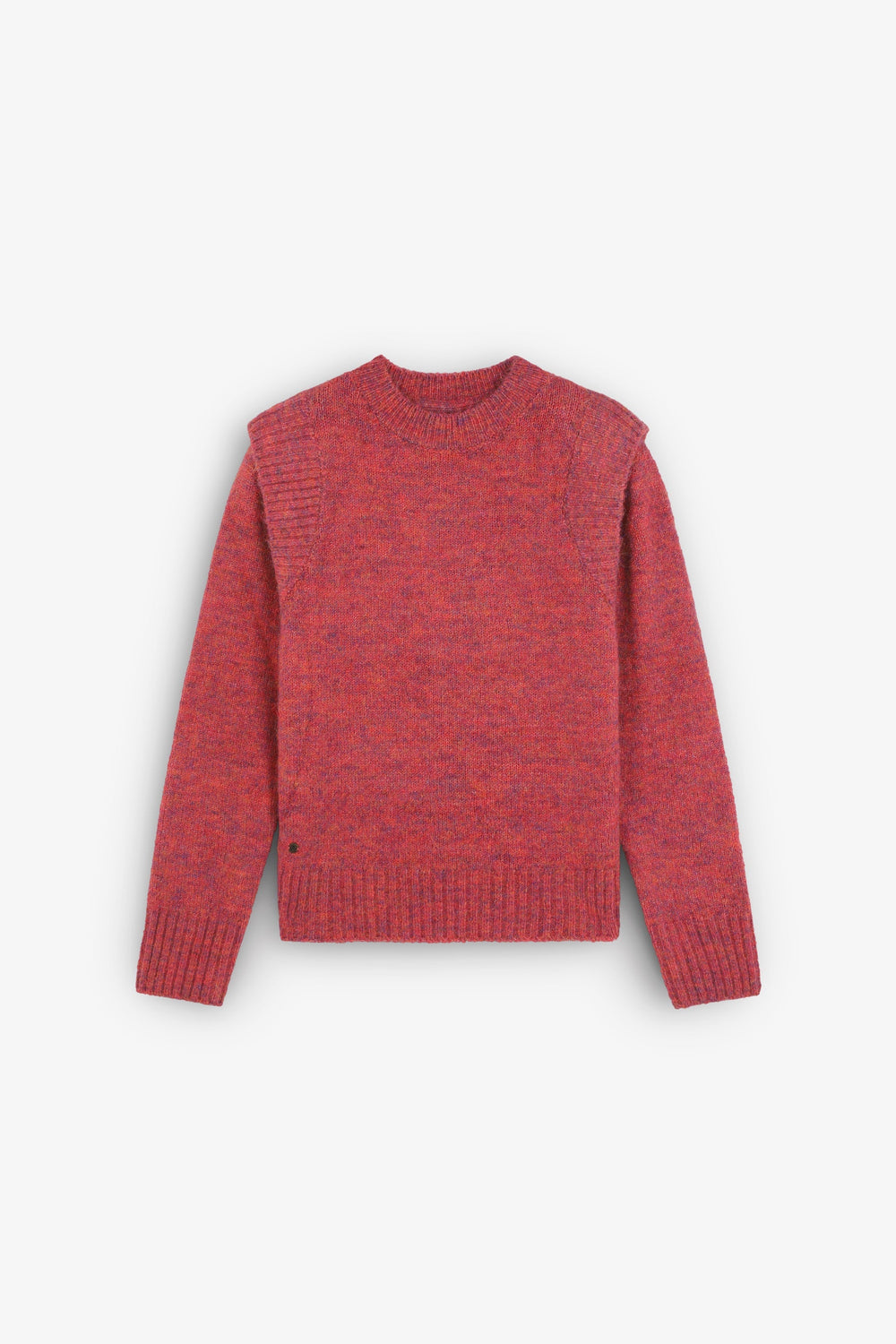 Knit sweater. Long sleeves. Round neck. Ribbed trim. Metallic skull detail.