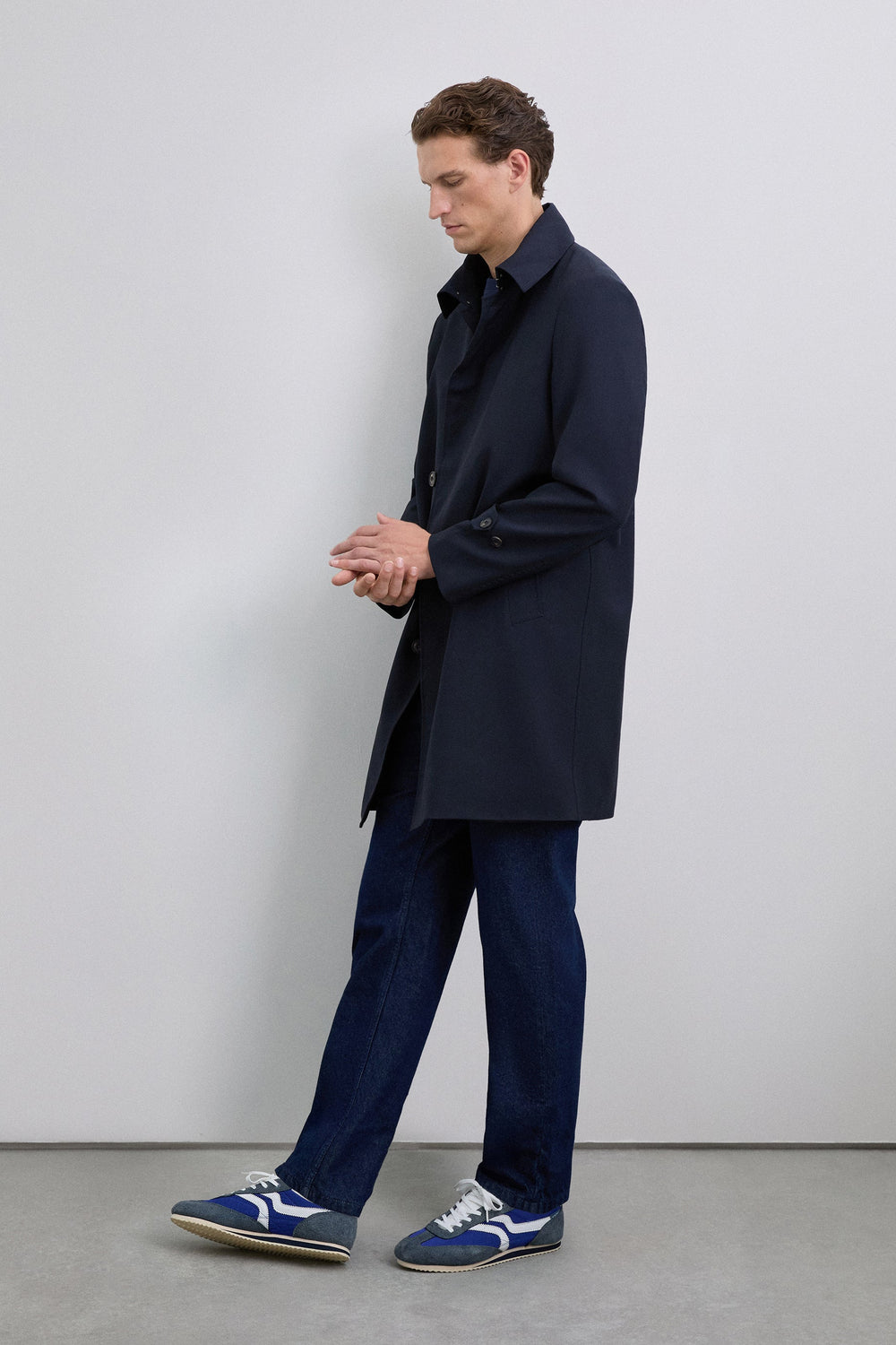 Retro-style sneakers. Upper made from a combination of technical fabric pieces and split leather details. Thin sole with contrasting detail.