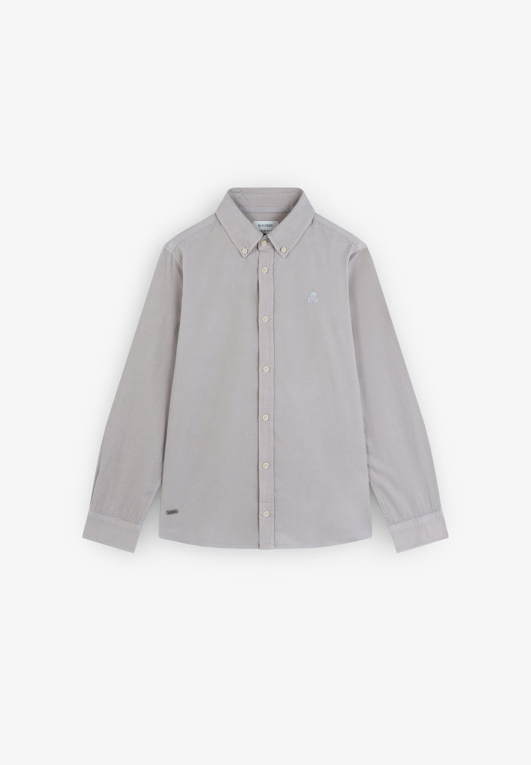 Oxford shirt made of micro corduroy. Regular Fit. Classic collar and button fastening. Long sleeves with buttoned cuffs. Embroidered contrast skull on the chest. Detail of metallic lower front label with logo.