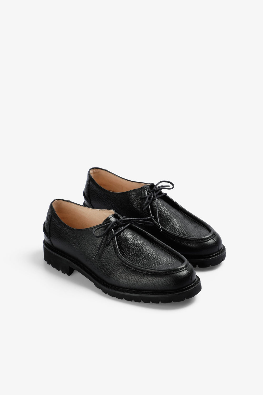 Schoenen gemaakt van 100% leer. Leren bies op de bovenkant/tong. Geweven label op de hielflap en antislip rubberen binnenzool. Vetersluiting.