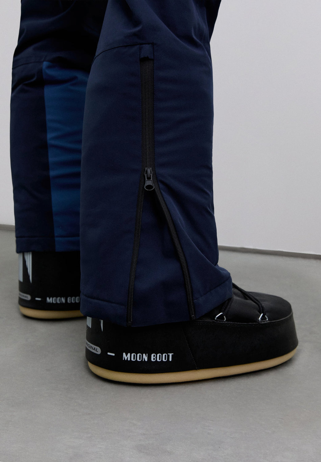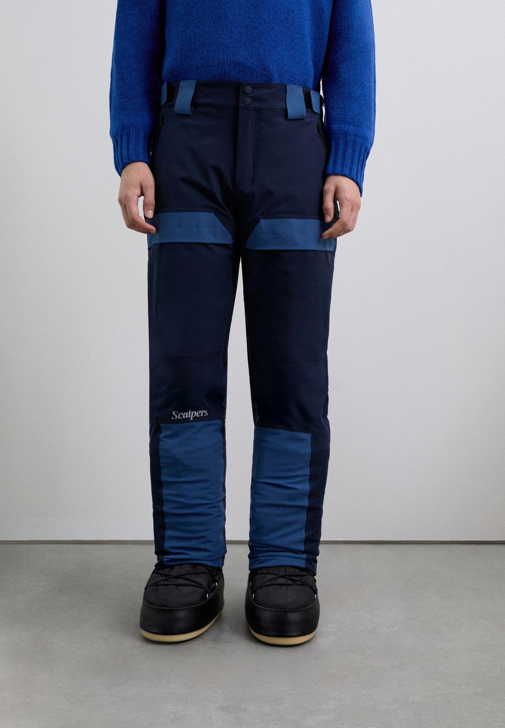 Ski trousers with braces made of technical fabric. Mid-rise with front zip fastening and adjustable waist with Velcro tabs. They feature adjustable elasticated braces and zipped side pockets. The hems are reinforced for added durability. Functional design with contrast panels and technical finishes.