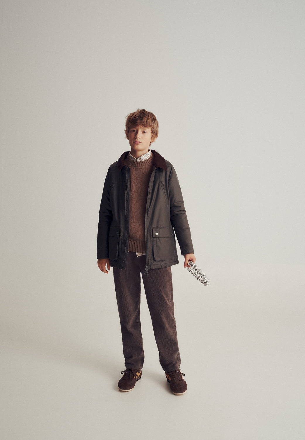 Parka made of 100% BCI cotton with a waxed effect. Regular fit, zip fastening and a detachable adjustable hood. Long sleeves and pockets with snap buttons and zip fastening. Corduroy lining.