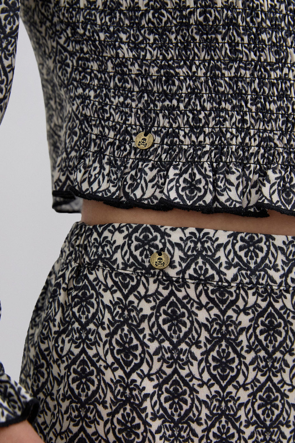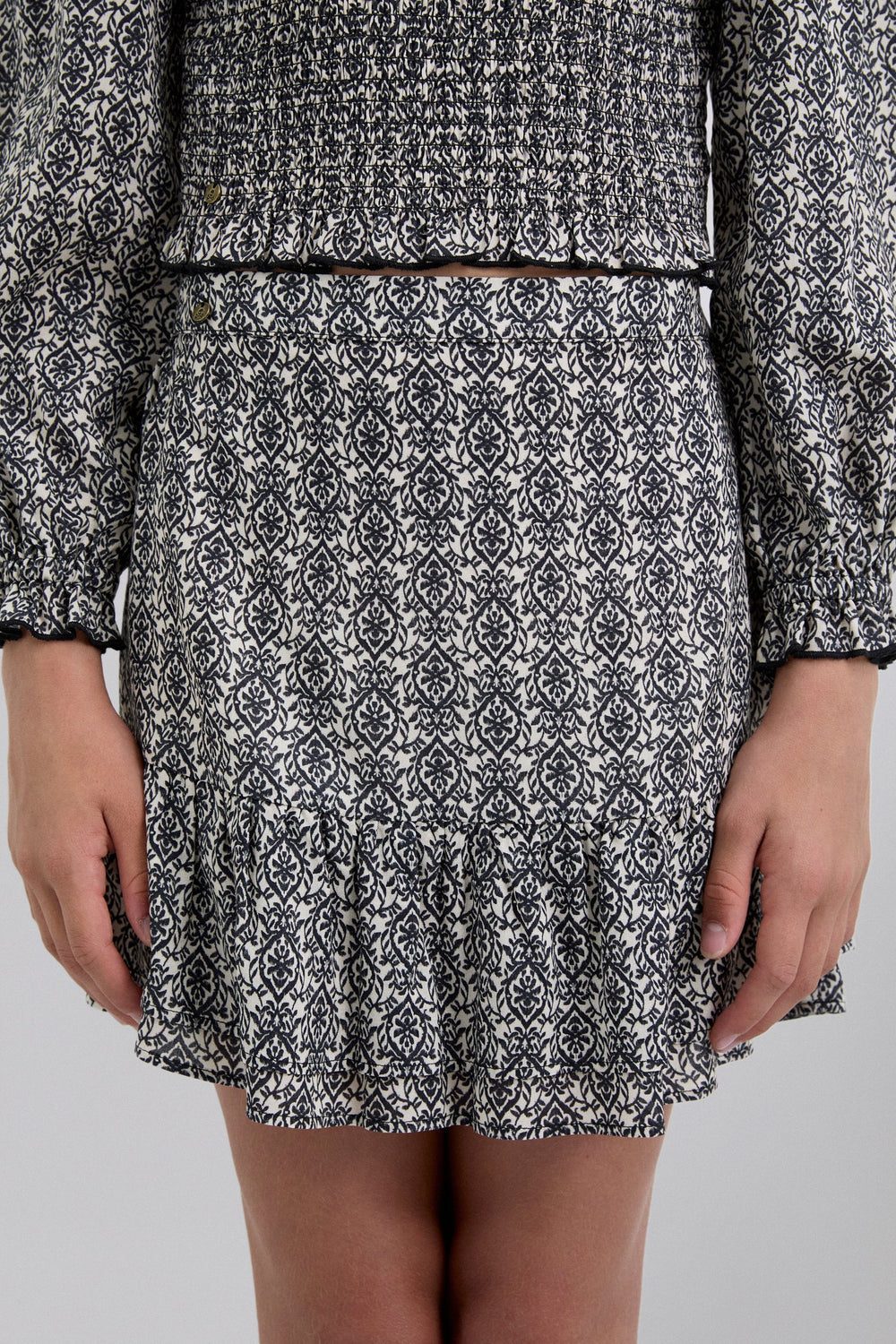Minirok met print, gemaakt van 100% viscose. Zijsluiting en volant bij de zoom.