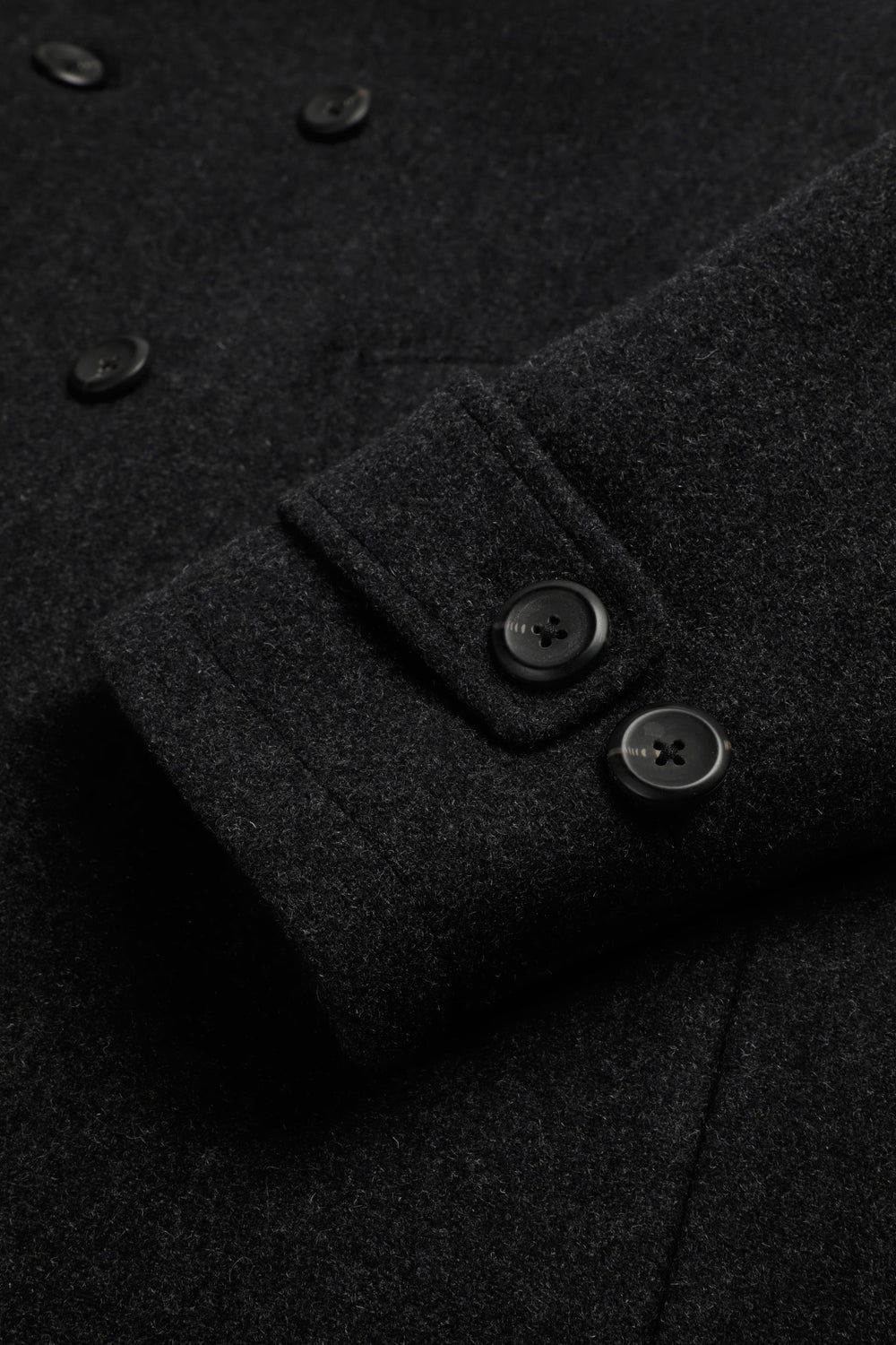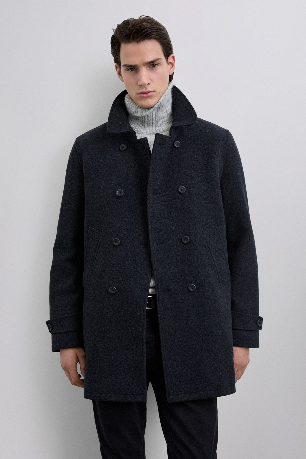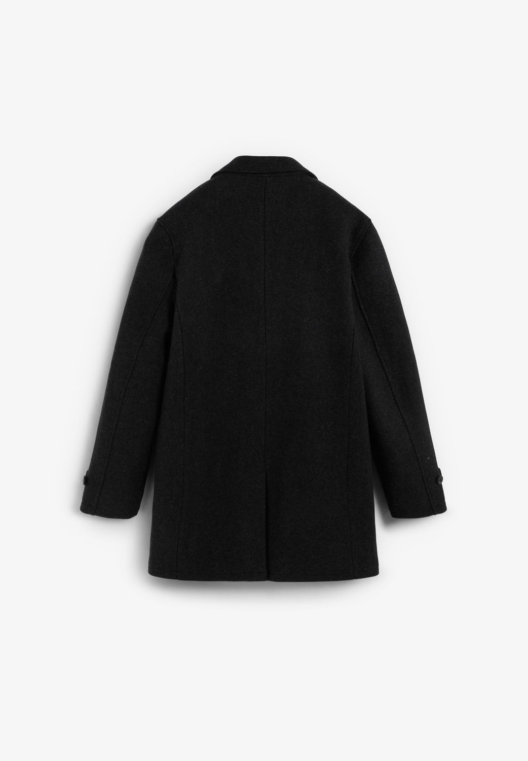 Double-breasted jas gemaakt van wolmix. Knoopsluiting aan de voorkant. Schuine paspelzakken aan de voorkant. Binnenzak. Manchetten met riemlussen.