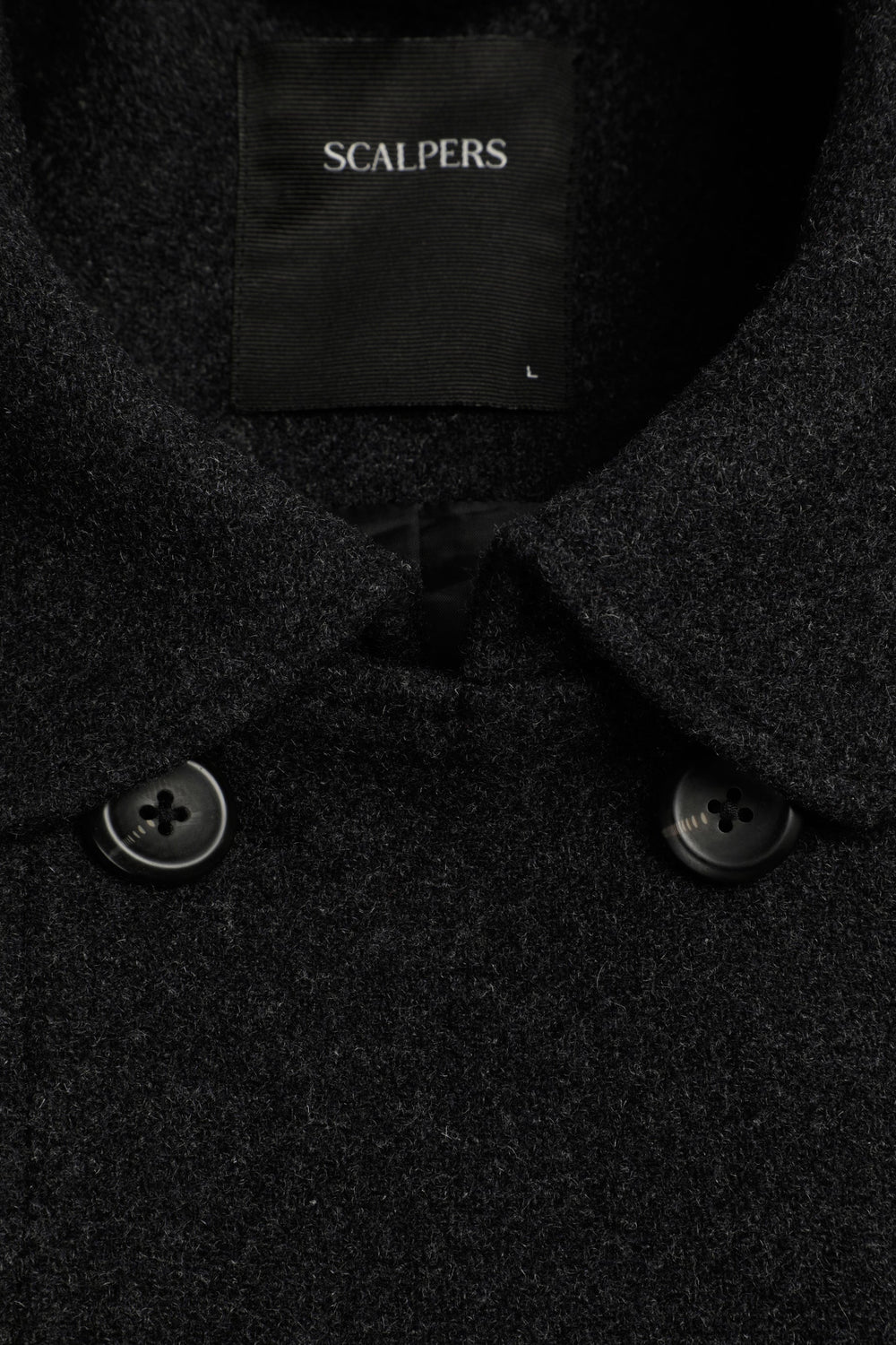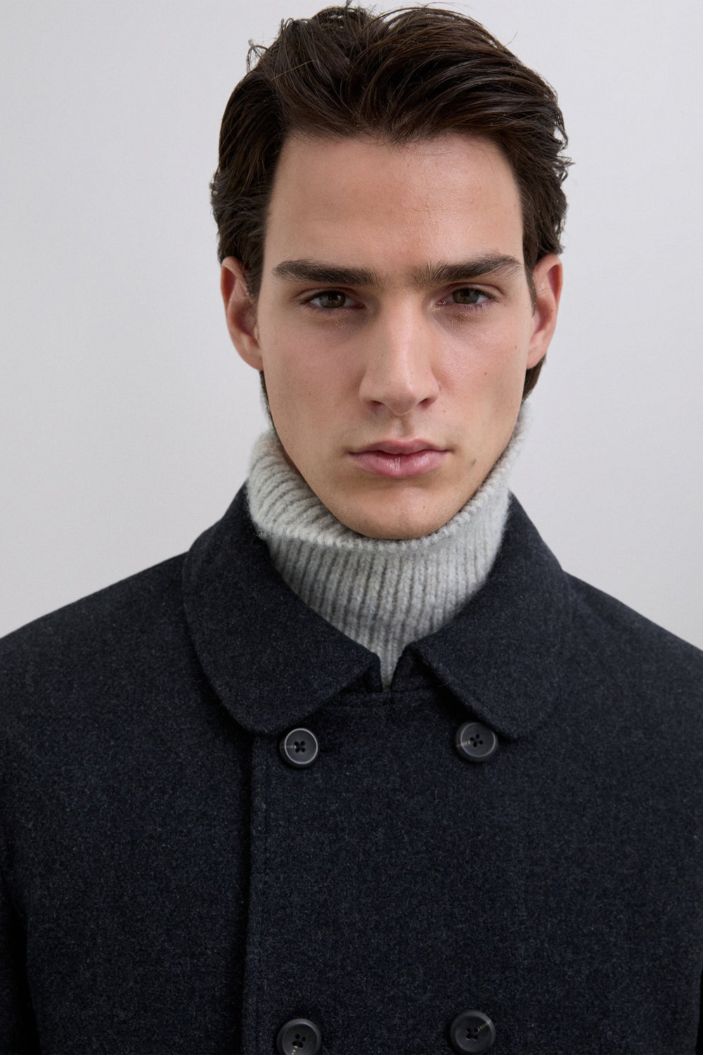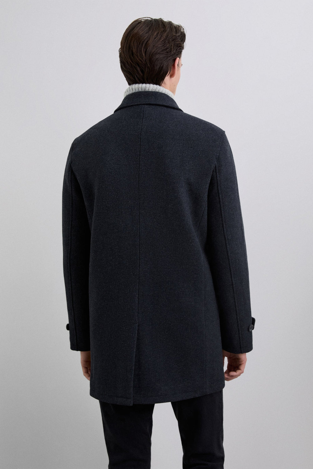 Double-breasted jas gemaakt van wolmix. Knoopsluiting aan de voorkant. Schuine paspelzakken aan de voorkant. Binnenzak. Manchetten met riemlussen.
