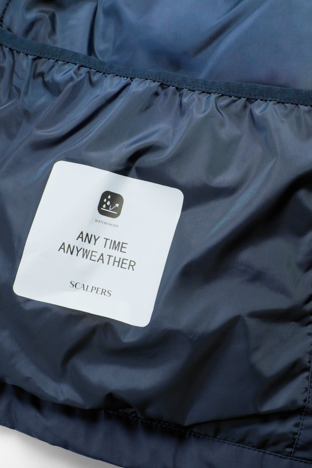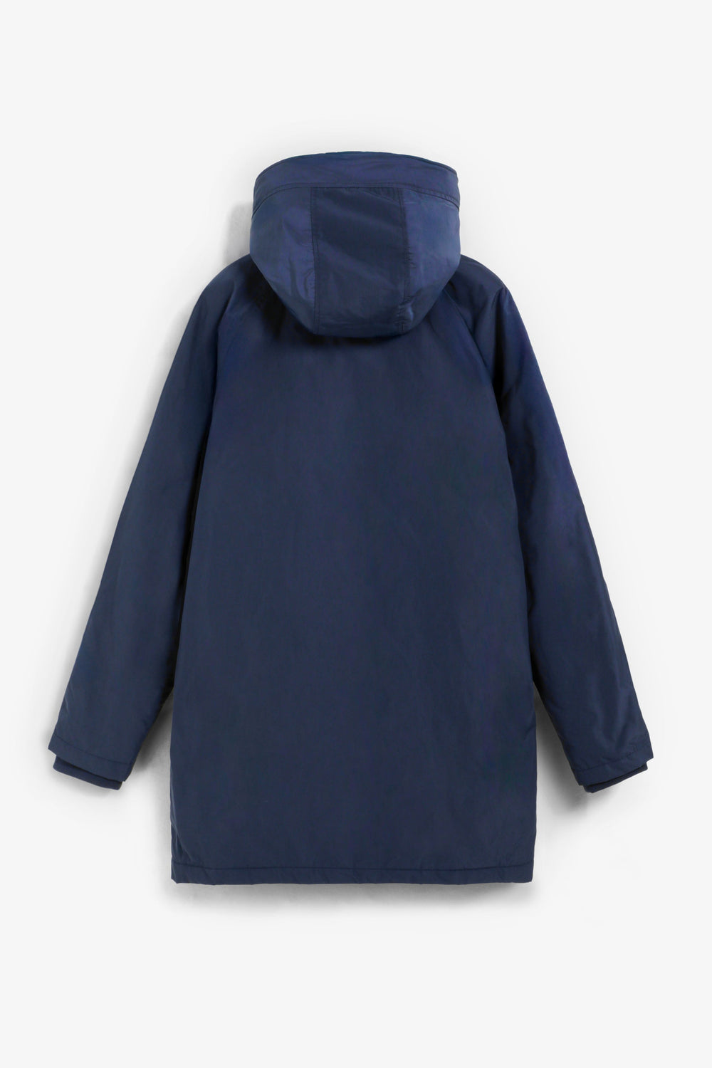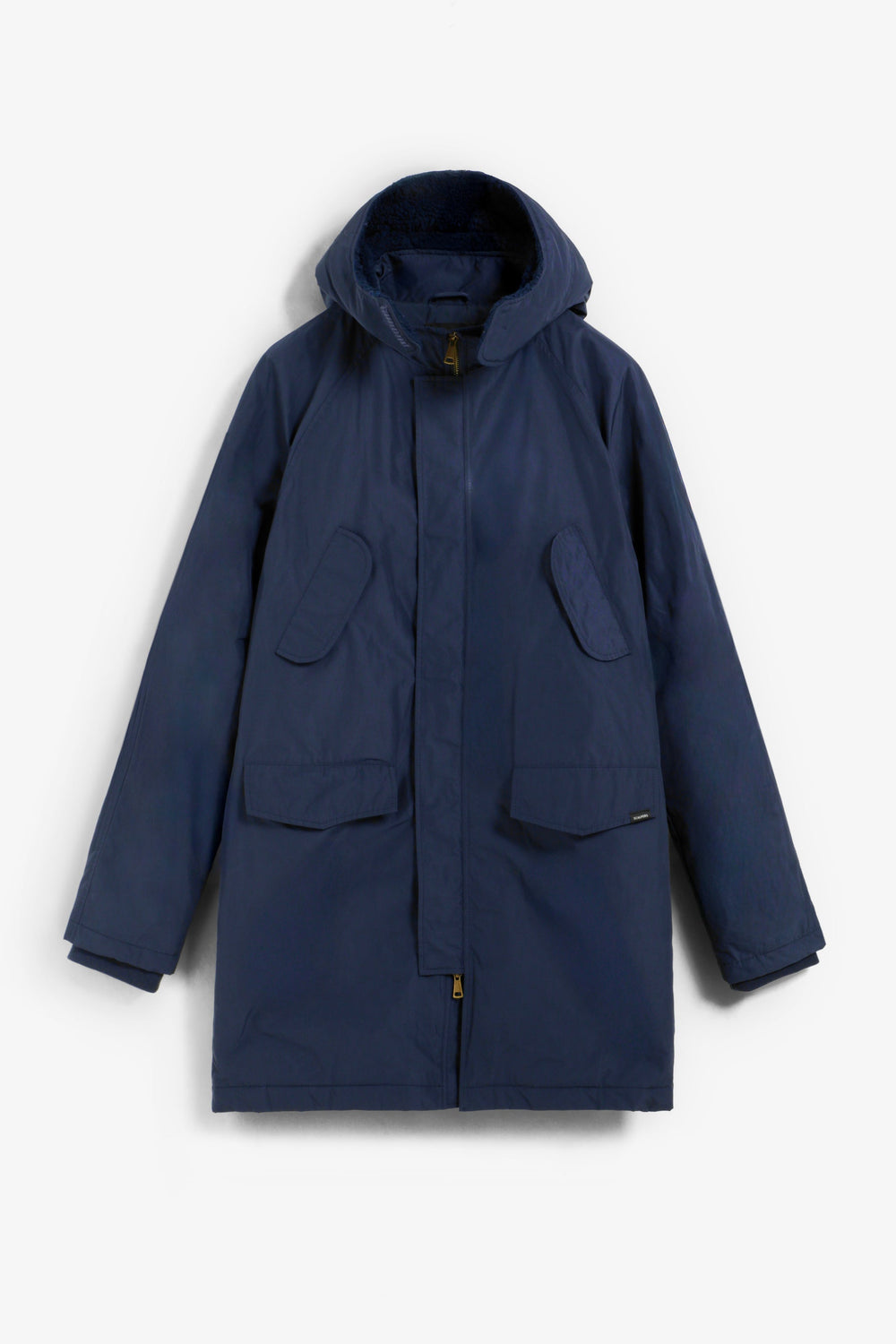 Waterdichte parka met capuchon. Ritssluiting voor. Lange mouw. Gewatteerd kledingstuk. Vier zakken aan de voorkant, twee schuine zakken met klep en twee rechte zakken onderaan. Binnenkant gevuld met thermolite. Fleece voering op de capuchon. Neksluiting met klittenband. Rubberen patch met logo op de zak en print van doodshoofd op de mouw.