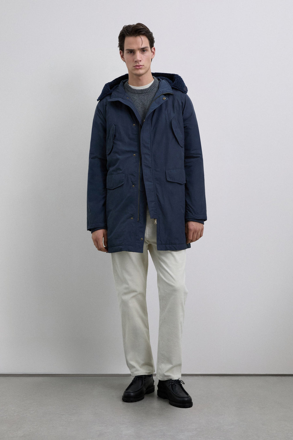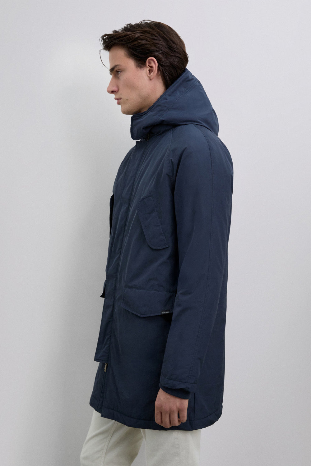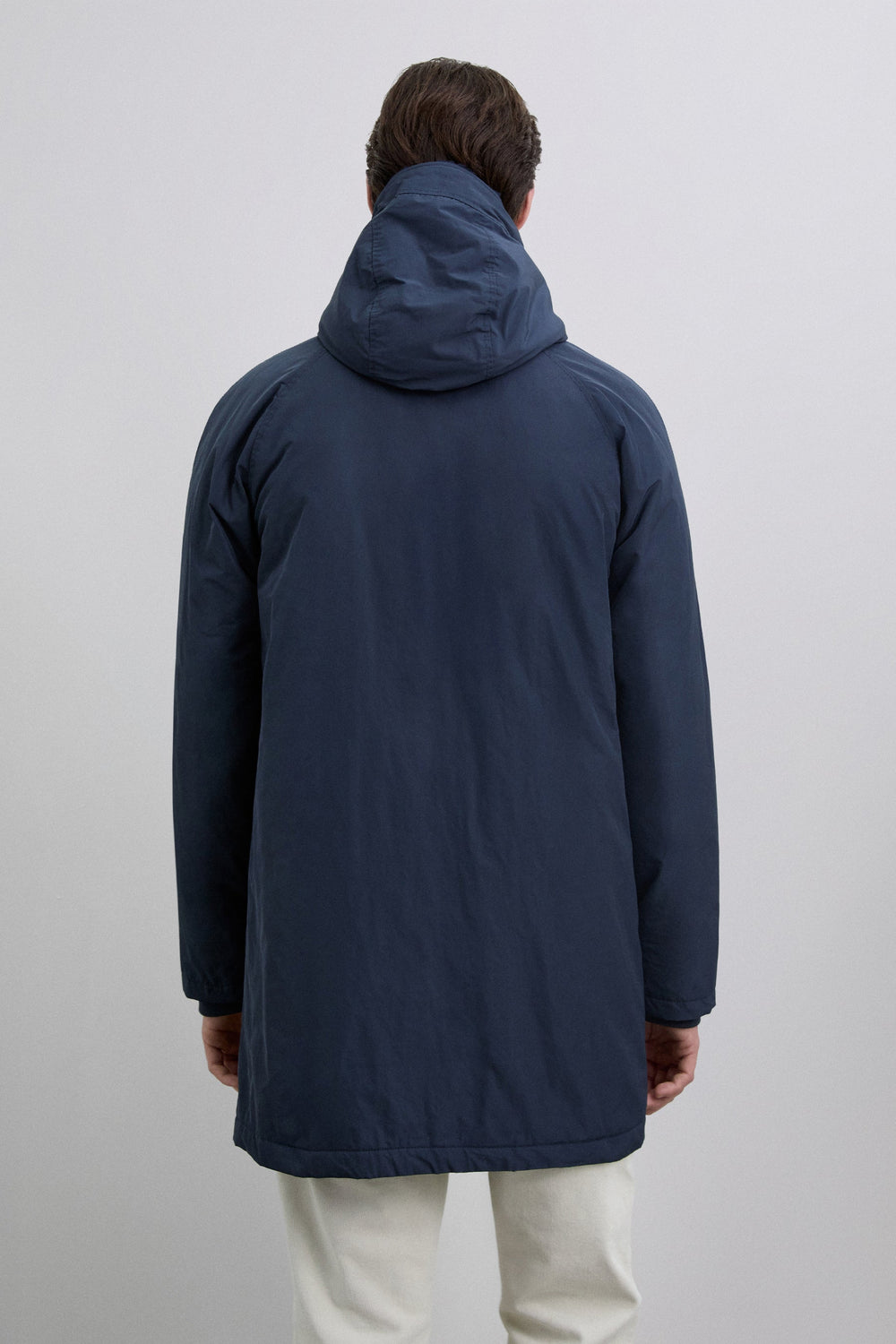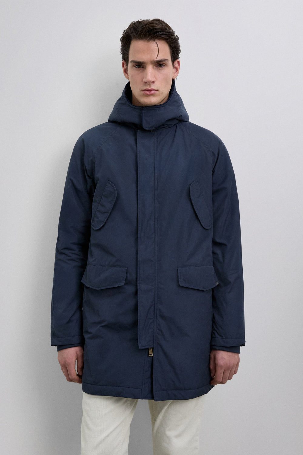 Waterdichte parka met capuchon. Ritssluiting voor. Lange mouw. Gewatteerd kledingstuk. Vier zakken aan de voorkant, twee schuine zakken met klep en twee rechte zakken onderaan. Binnenkant gevuld met thermolite. Fleece voering op de capuchon. Neksluiting met klittenband. Rubberen patch met logo op de zak en print van doodshoofd op de mouw.