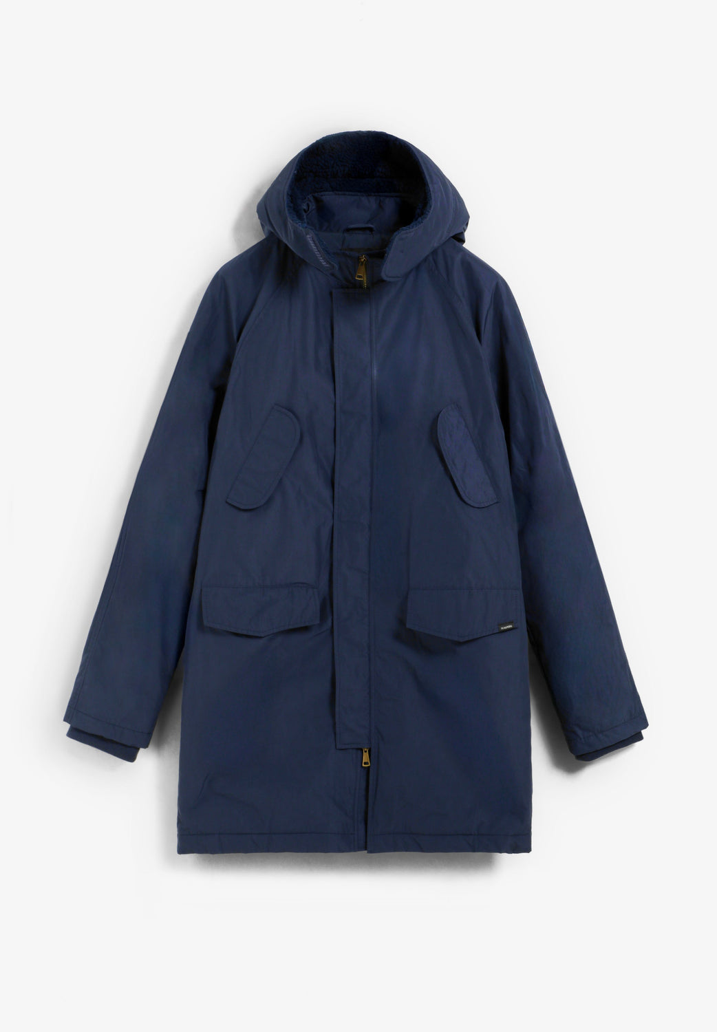 Waterproof parka with hood. Front zip fastening. Long sleeves. Padded garment with quilting. Four front pockets, two slanted flap pockets and two straight lower pockets. Thermolite filling. Fleece detail on the hood. Velcro neck fastening. Rubber logo patch detail on the pocket and skull print on the sleeve.