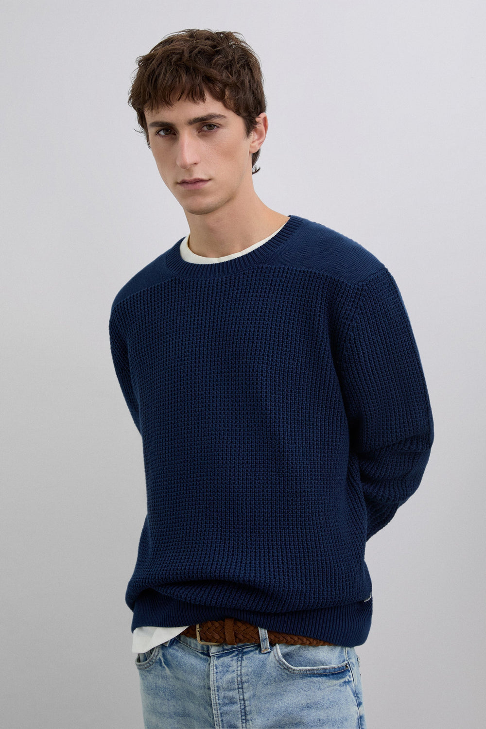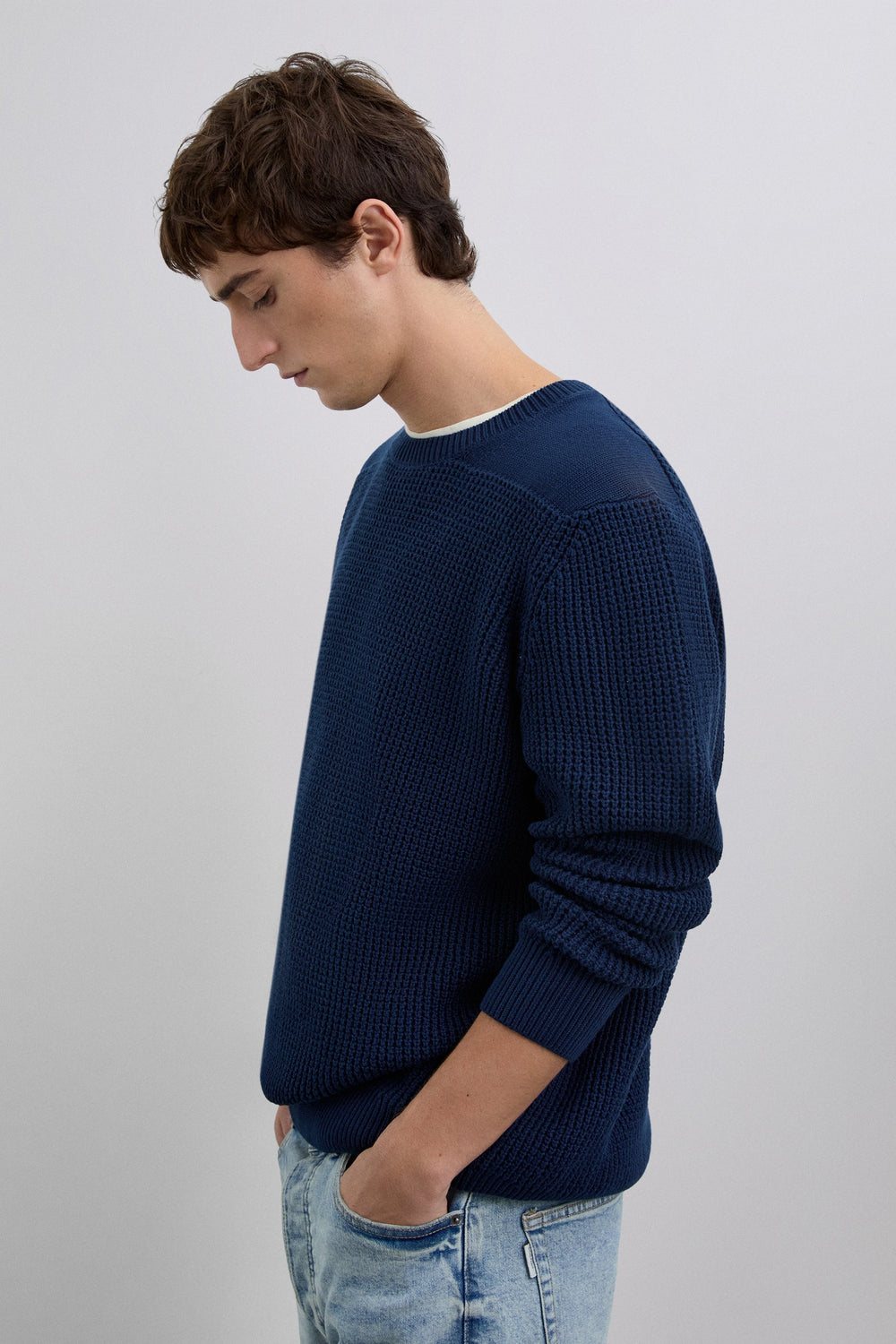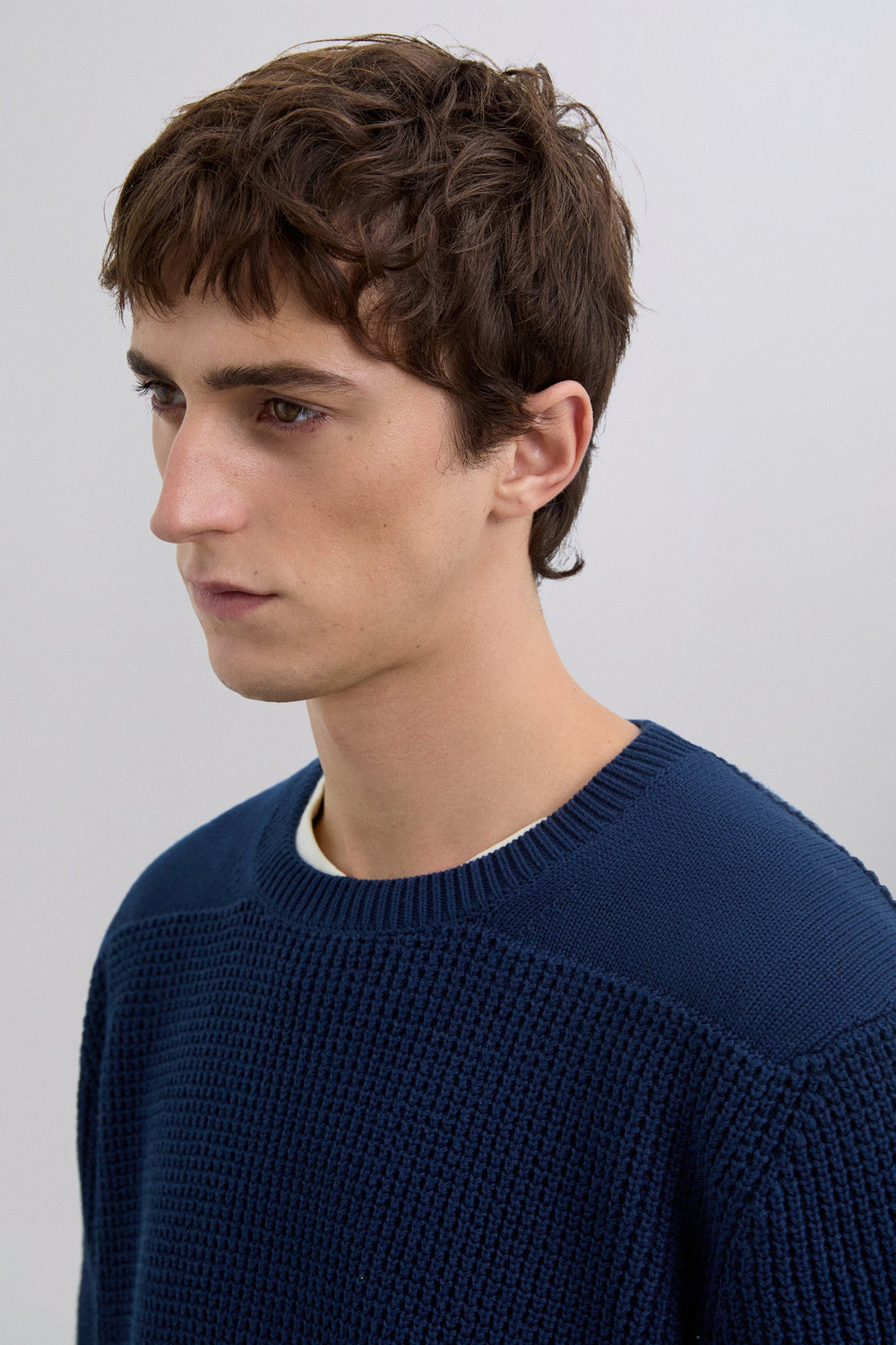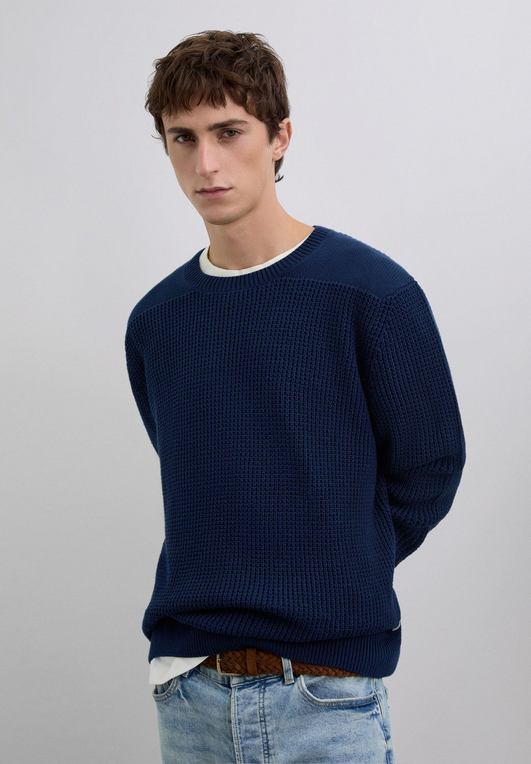 Trui gemaakt van 100% BCI-katoen met structuur. Regular fit. Ronde hals. Lange mouw. Label met logo aan de binnenkant.