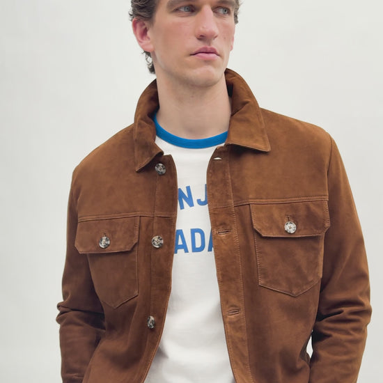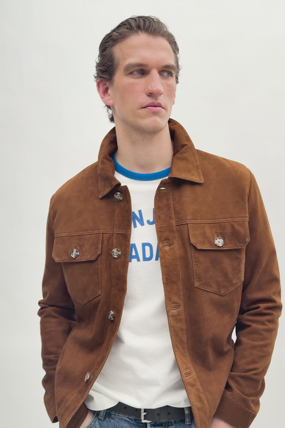 Jacket made of 100% suede. Button fastening. Chest pockets with button fastening on flap. Button detail on the cuff.