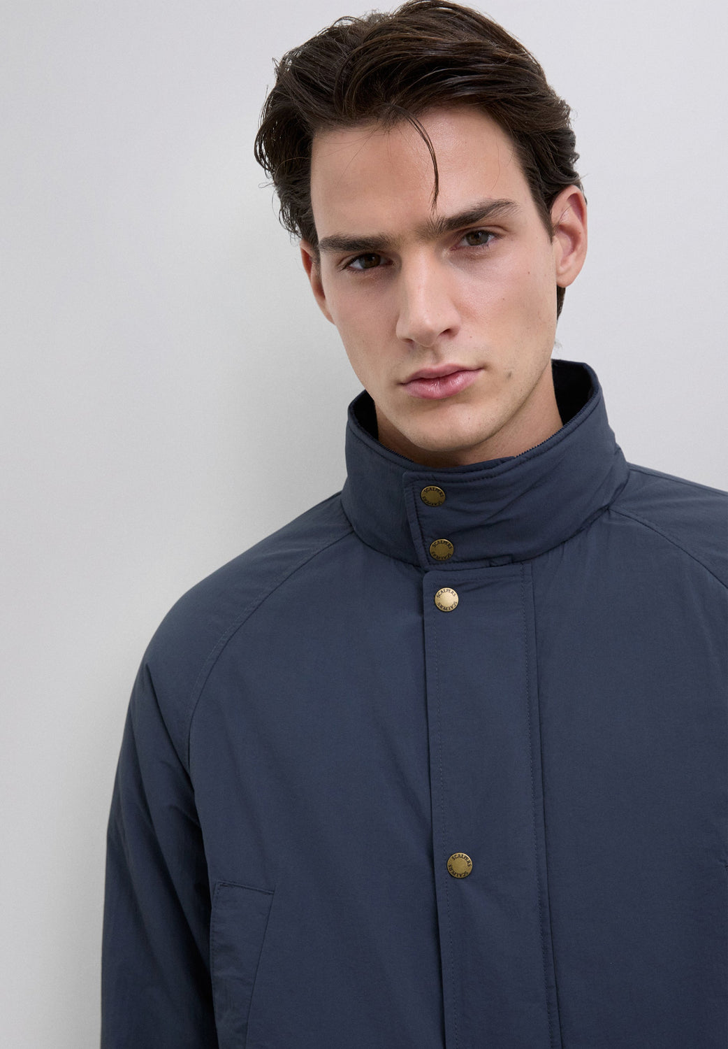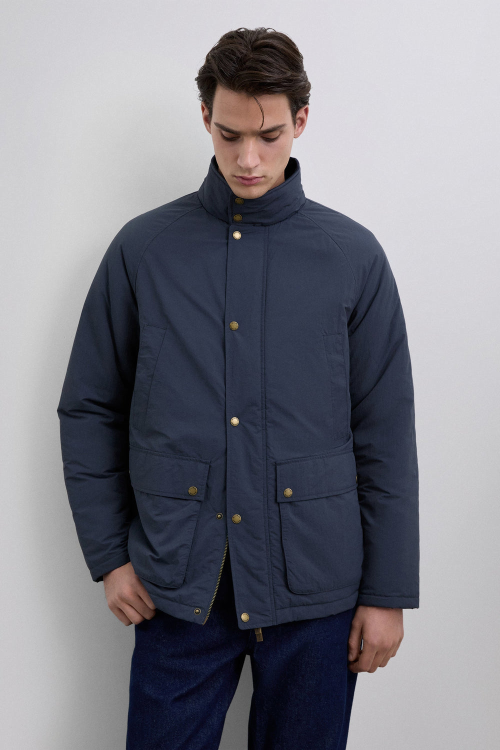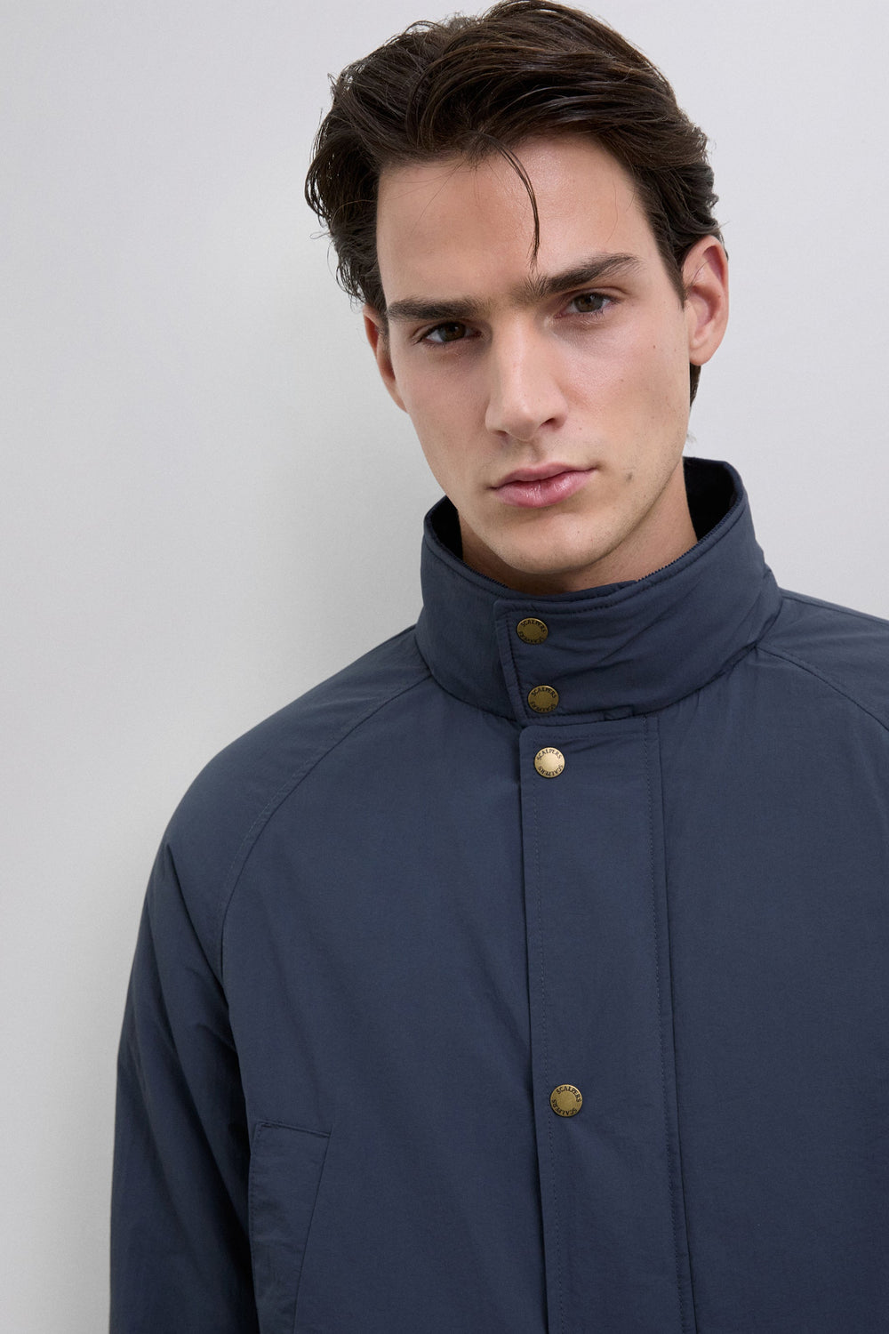 Waterproof technical jacket with raglan sleeves. Four front pockets. Zip and press stud fastening. Scalpers label detail on the side and customised Scalpers pull tab. Tonal corduroy detail inside the collar.