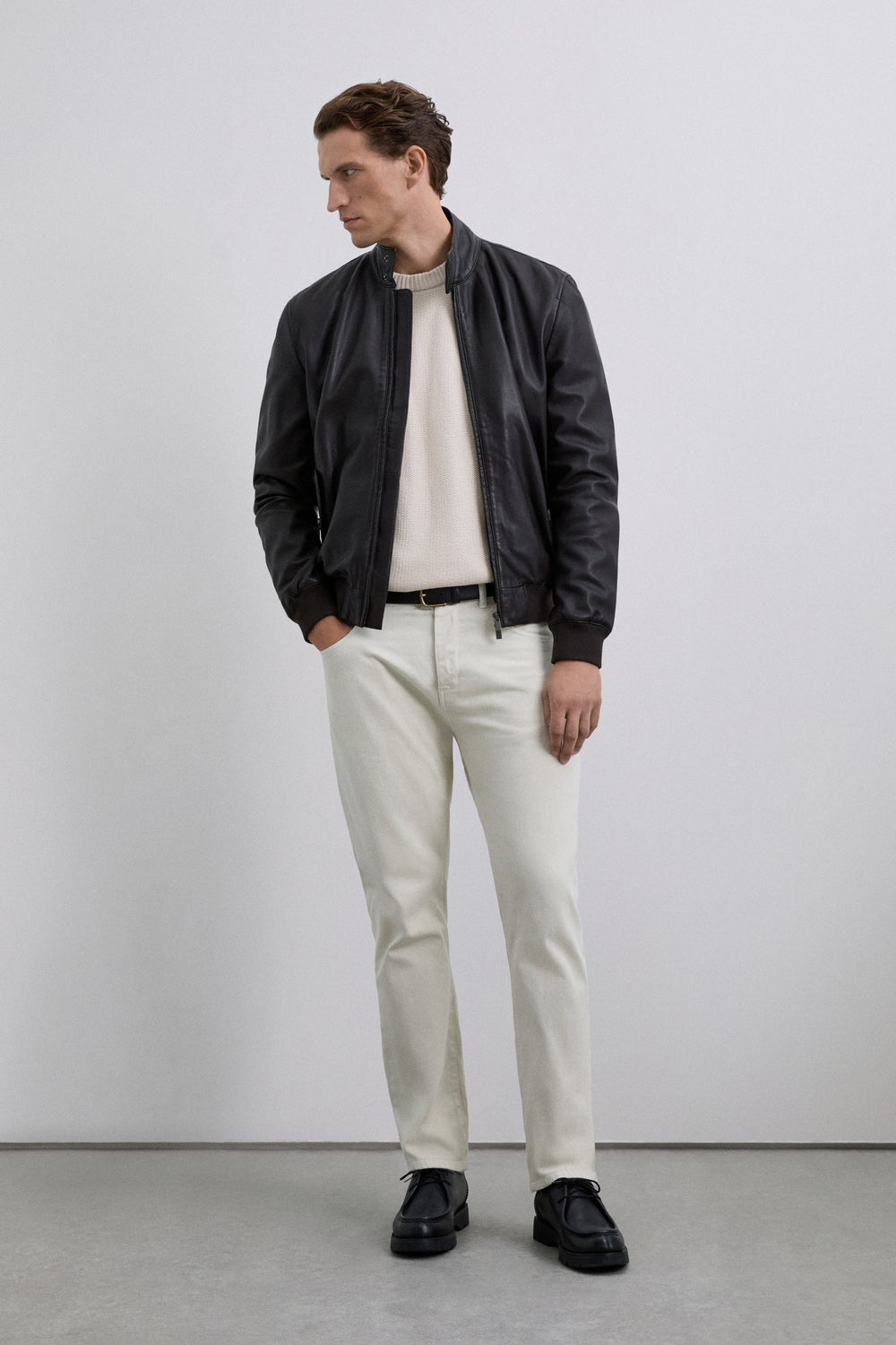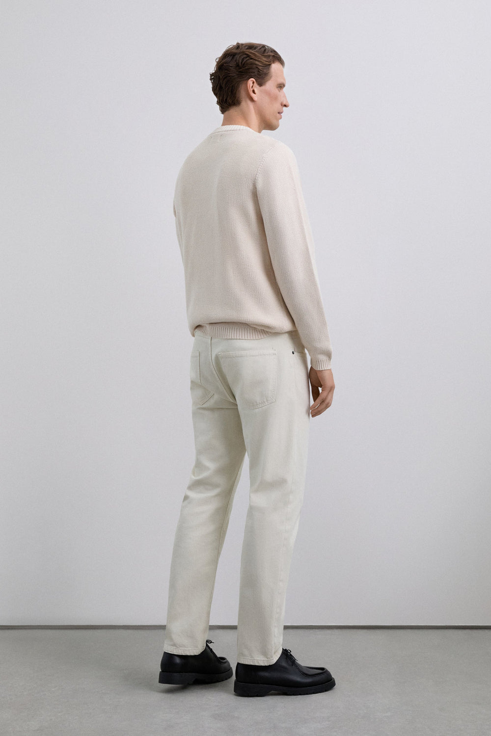 Straight trousers made of 100% cotton. Front and back pockets. Button and zip fastening. Belt loops at the waist. Logo label details on the belt and pocket.