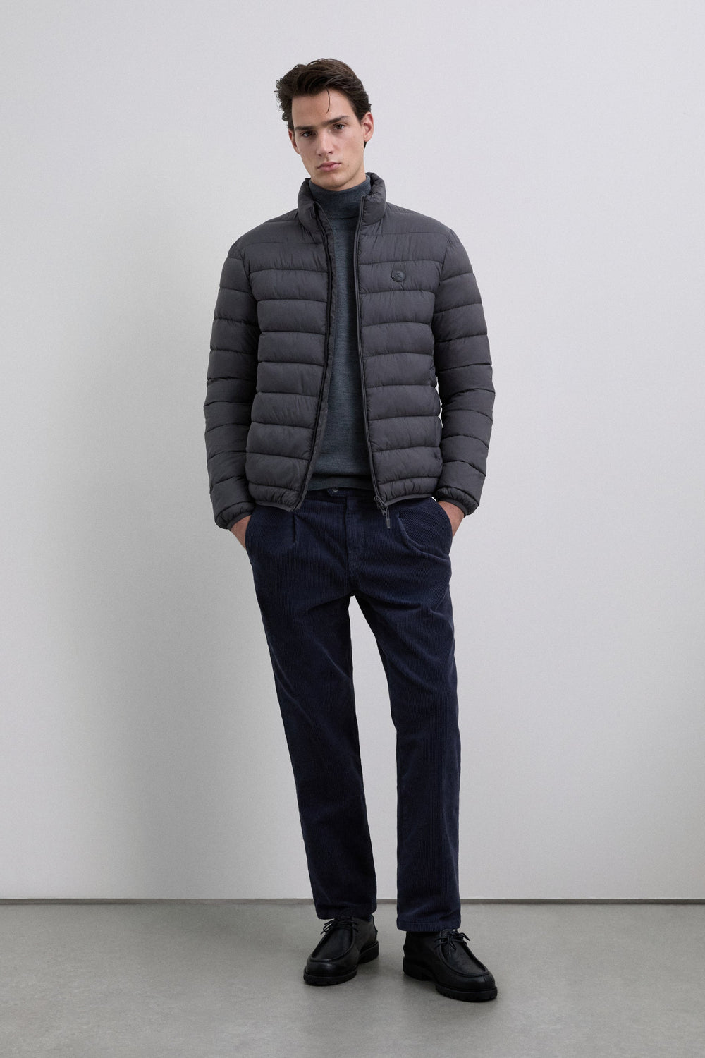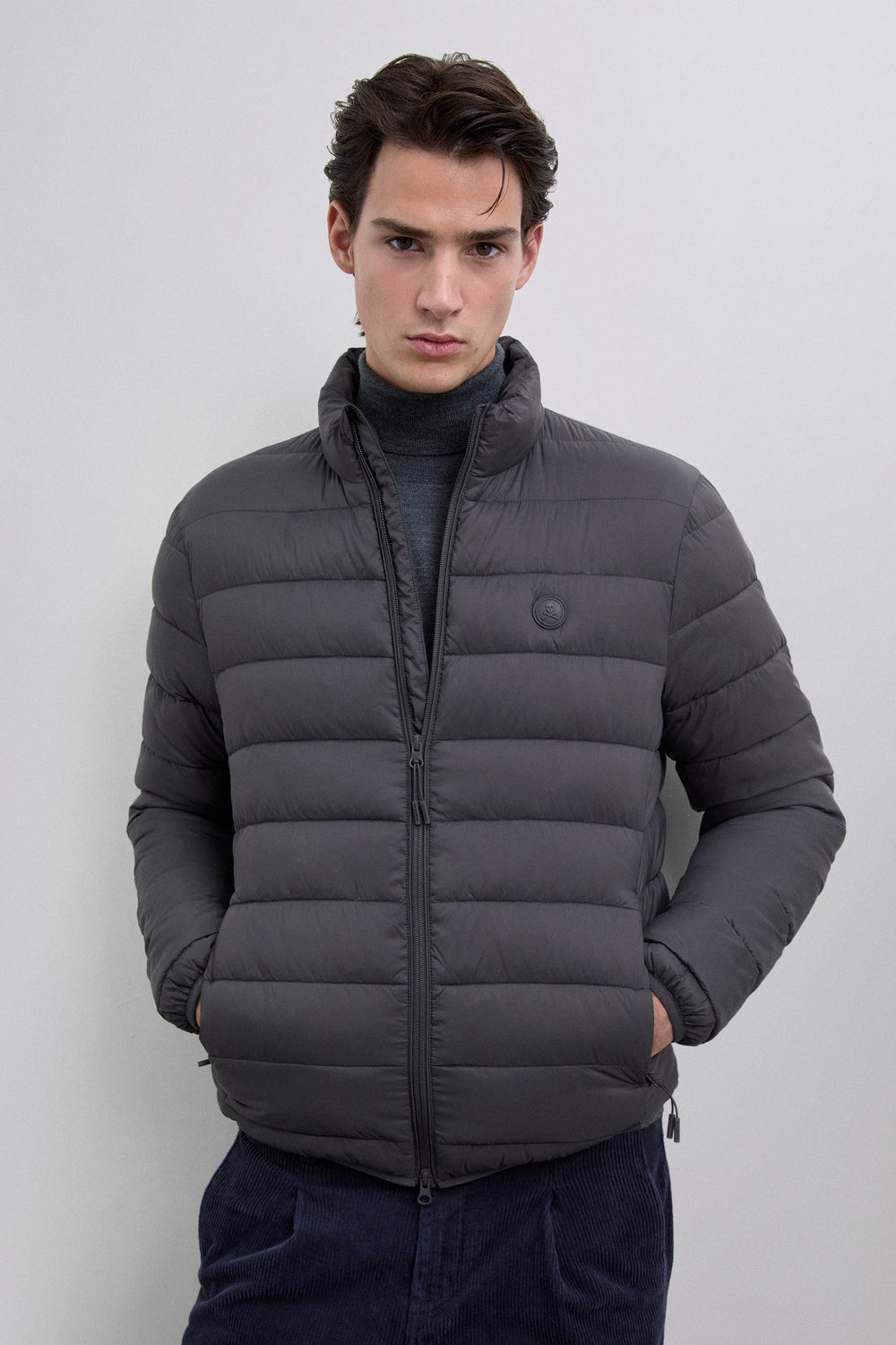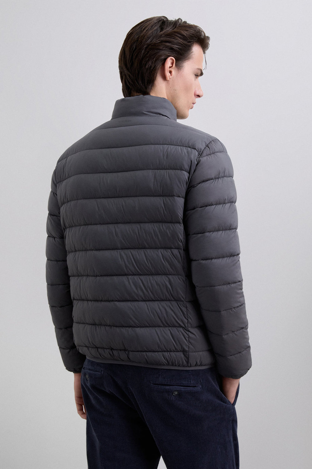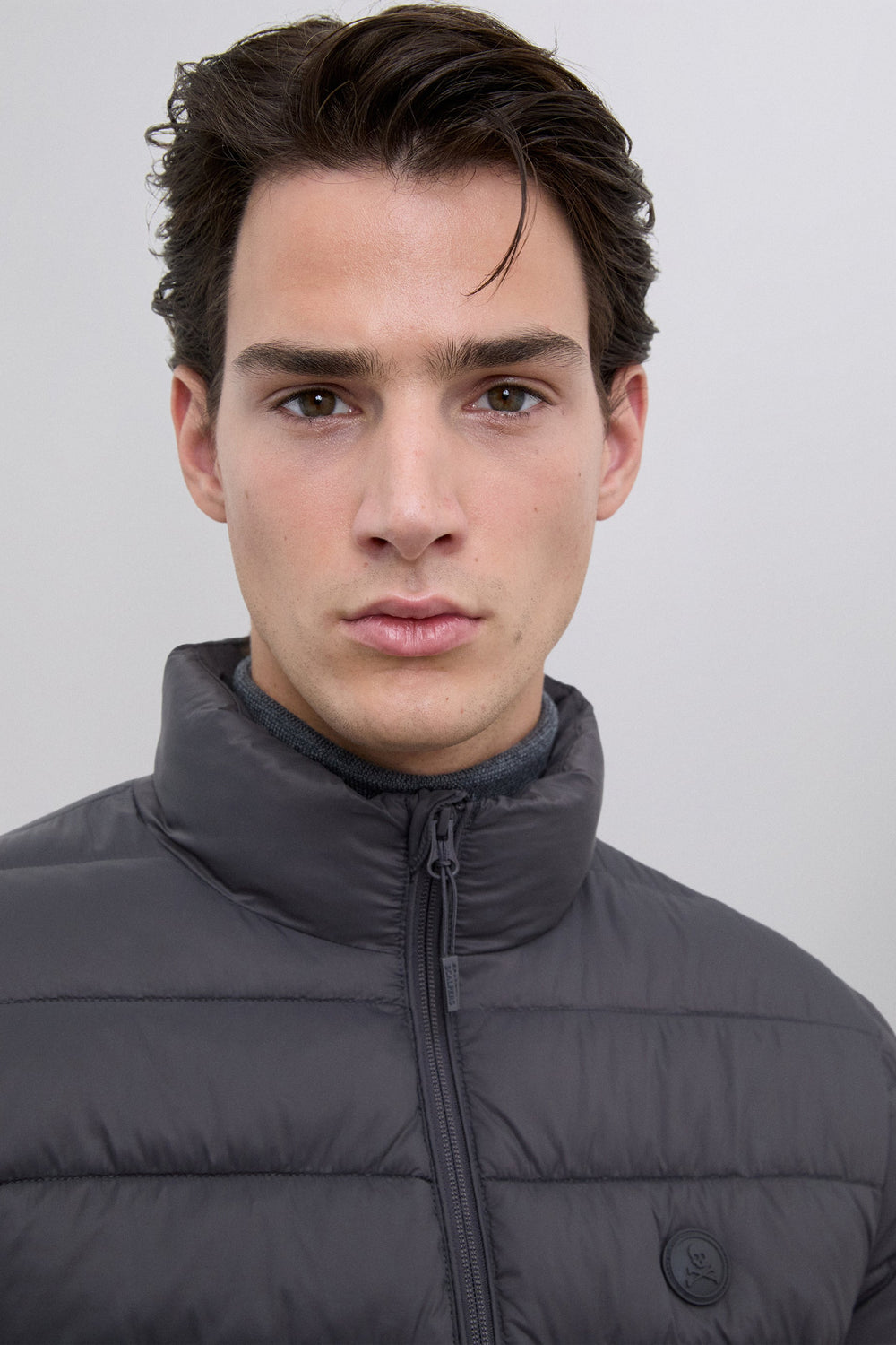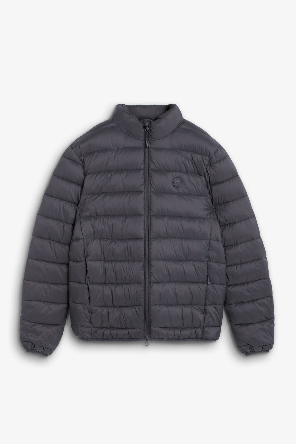 Puffer cardigan. Water repellent. Inner lining made of technical fabric. Concealed side pockets with fleece lining. Engraved double slider zip fastening. Rubberised patch with matching logo on chest.
