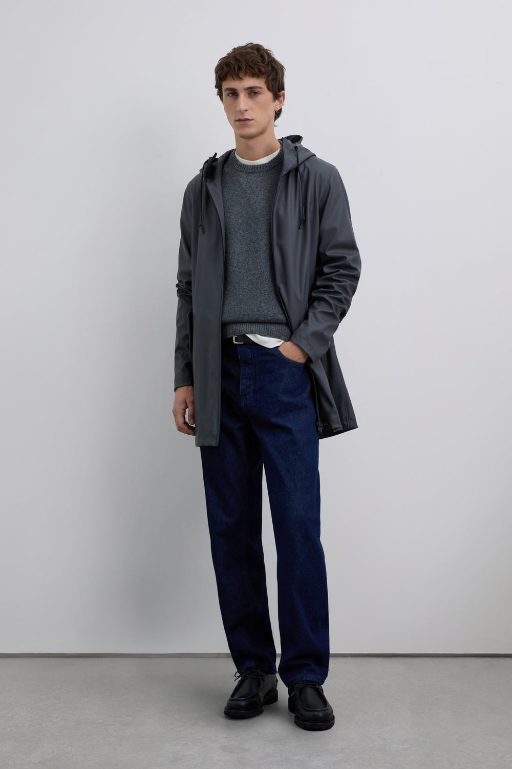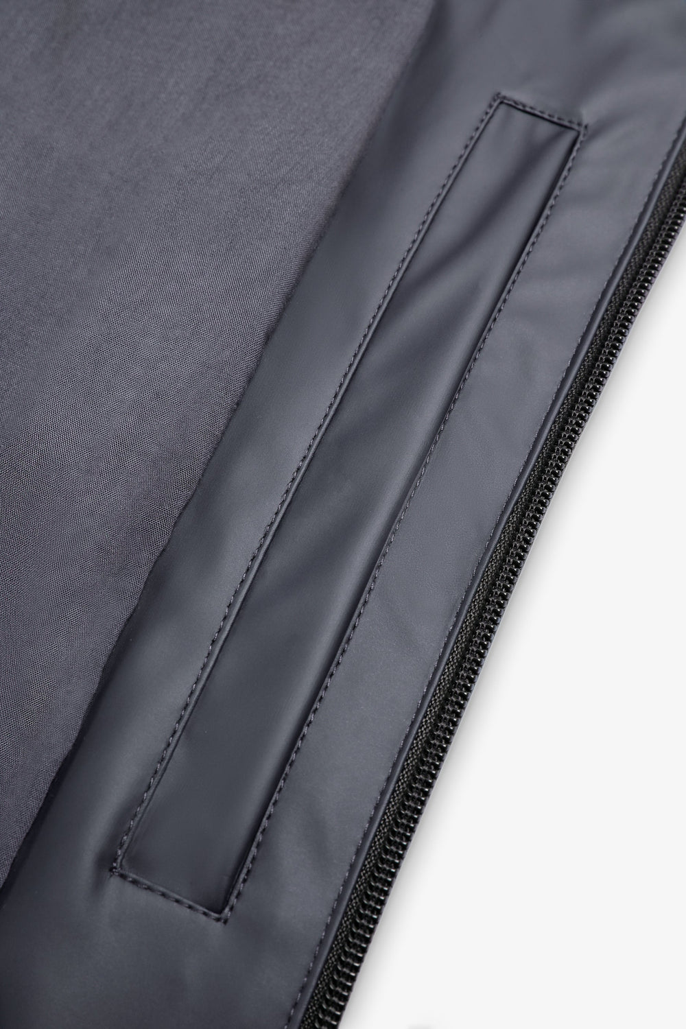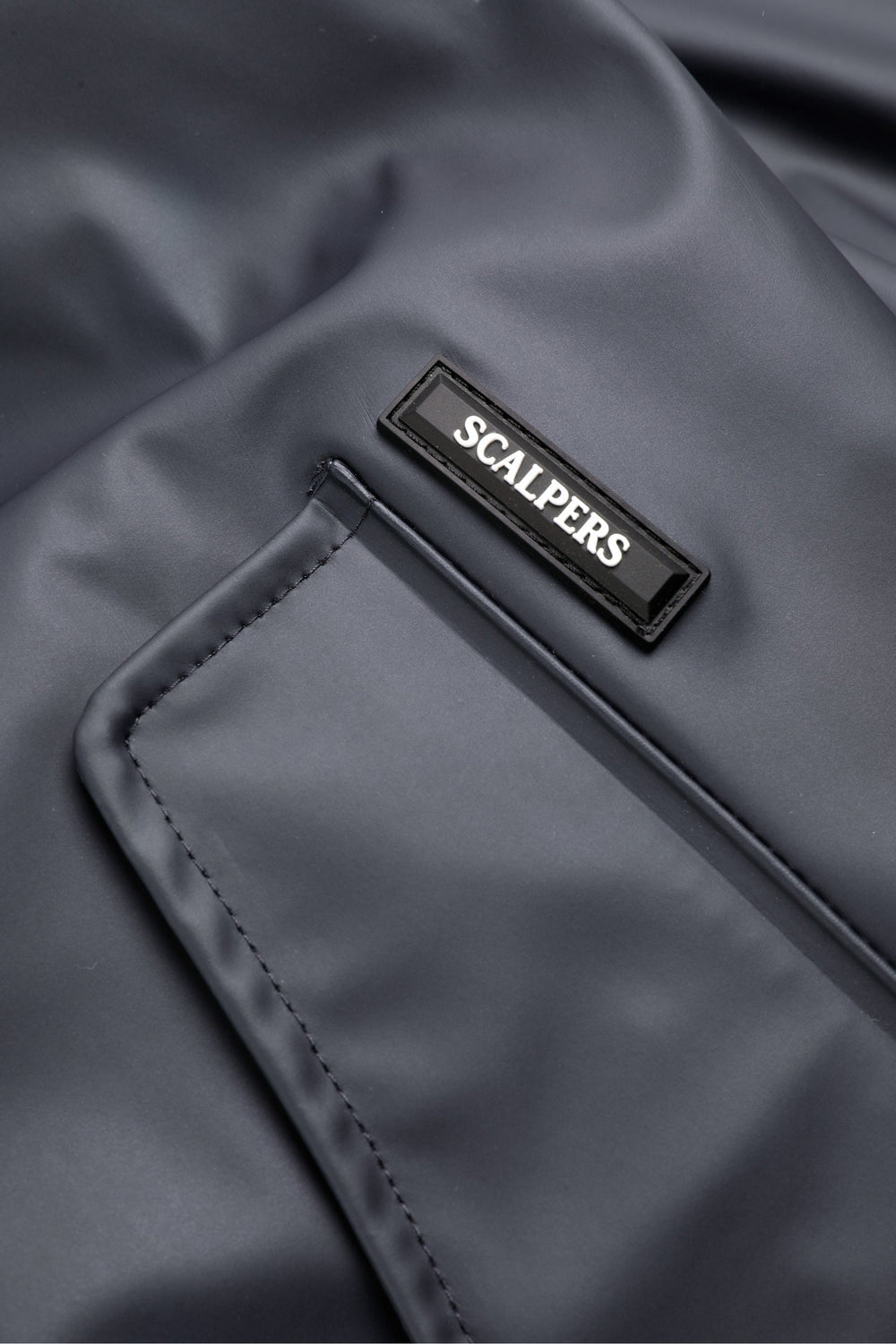 Waterproof jacket. Collar with an adjustable drawstring hood. Double slider thermo-sealed zip fastening. Long sleeves. Side pockets with placket and snap button. Contrast rubberised logo detail on lower front and matching skull on zip.