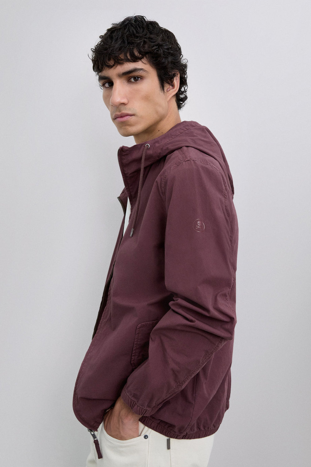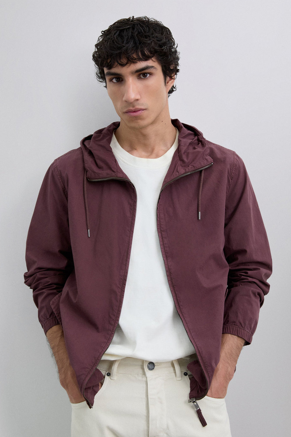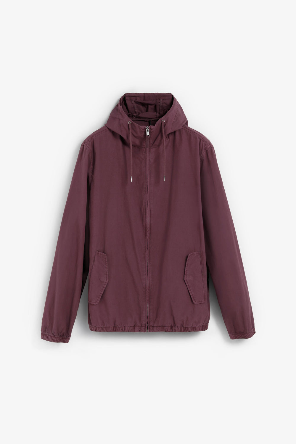 Lightweight jacket made of 100% cotton BCI. Regular fit. Adjustable drawstring hood and zip fastening. Long sleeves with elastic cuffs. Front flap pockets. Lined.