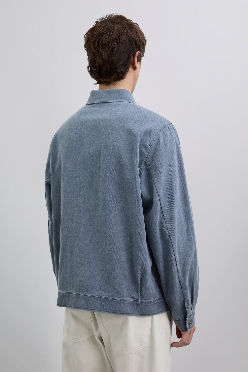 Jacket made of recycled cotton. Faded effect. Two flap pockets on the chest with button fastening. Front button fastening.