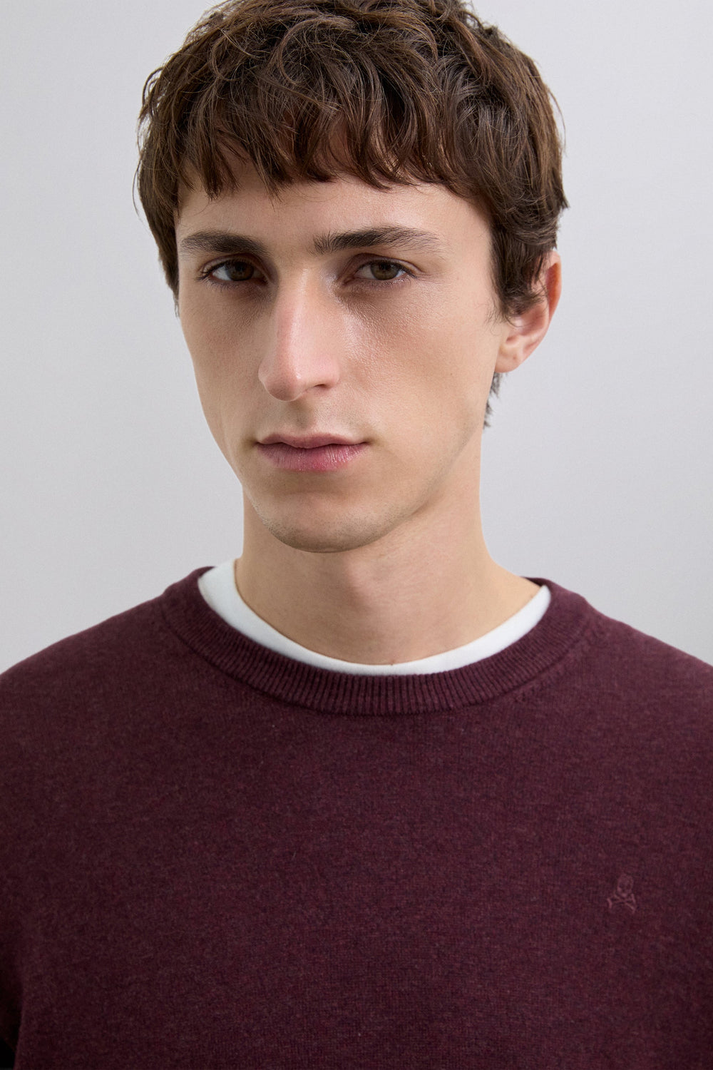 Sweater made of cotton. Long sleeves. Round neck. Matching embroidered skull detail on the chest. Ribbed trim.