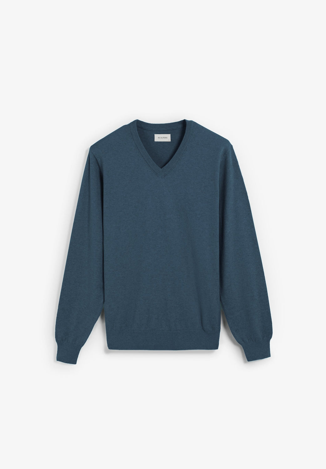 Sweater made of cotton. Regular fit. V-neck. Long sleeves. Ribbed cuffs and waistband. Matching embroidered skull detail on the chest.