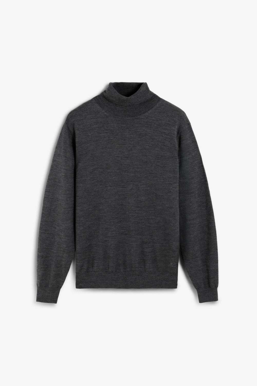 Sweater made of 100% merino wool. Long sleeves. Roll neck. Ribbed cuffs and hem. Matching embroidered skull detail on the chest.