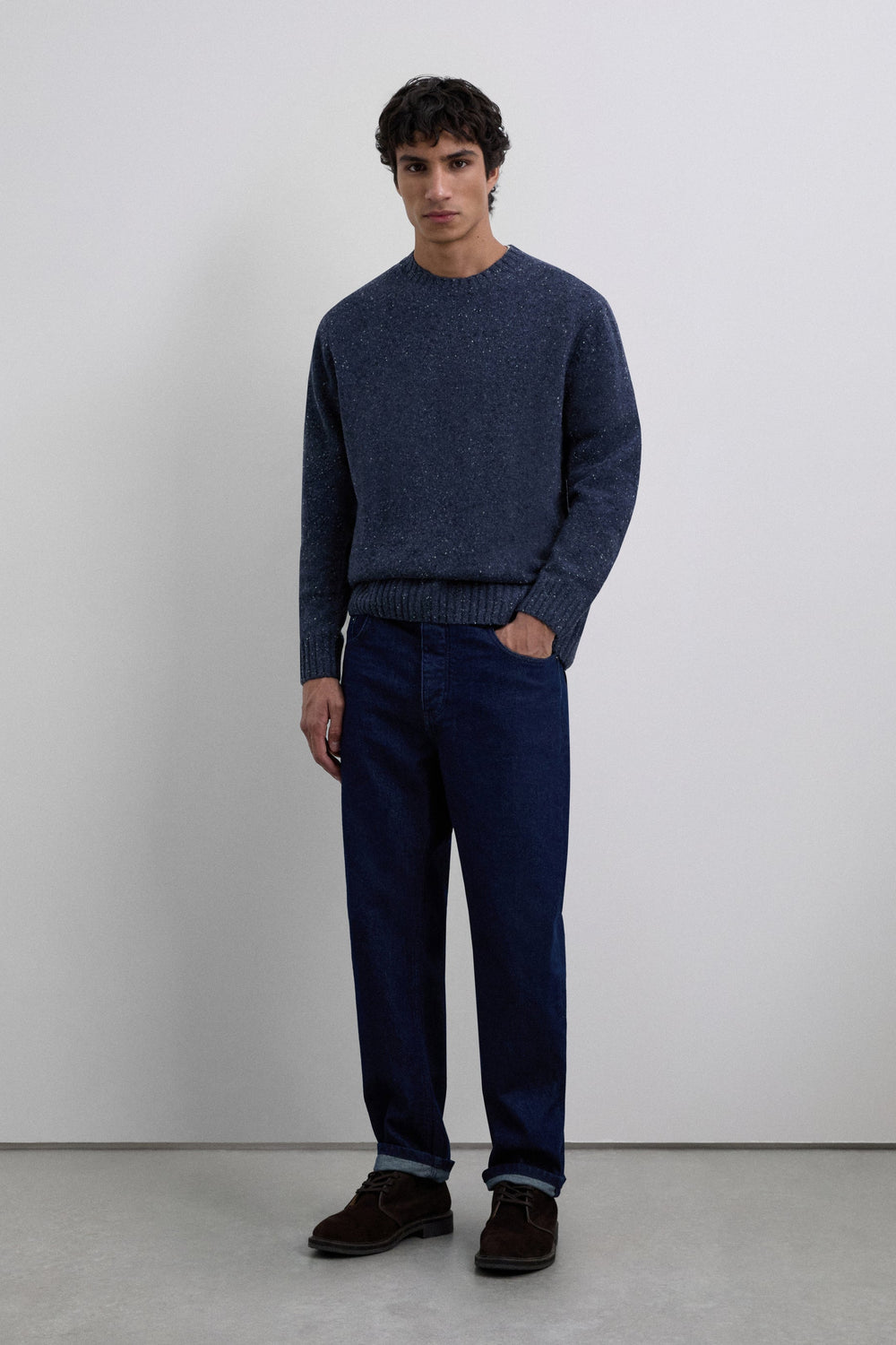 Sweater made of wool. Regular Fit. Round neck. Long sleeves. Ribbed trim. Embroidered logo label detail on the inside. Ribbed trim.