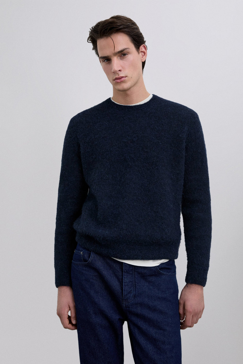 Sweater made of brushed alpaca. Round neck. Long sleeves. Regular fit.
