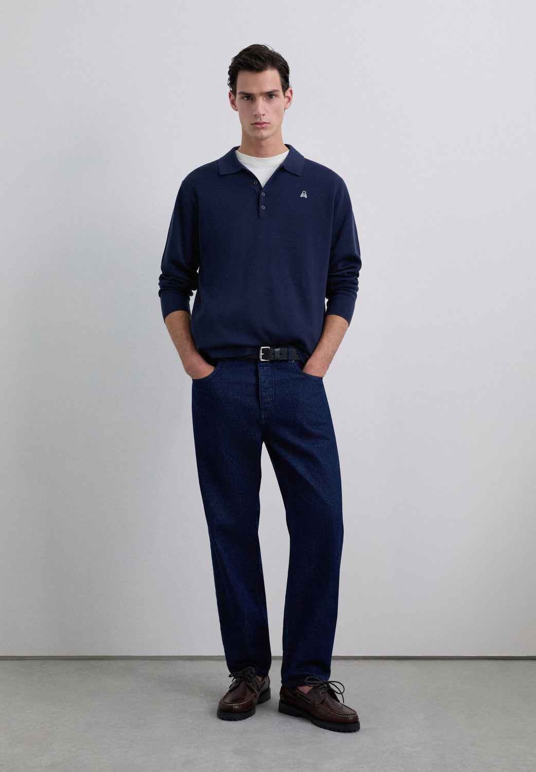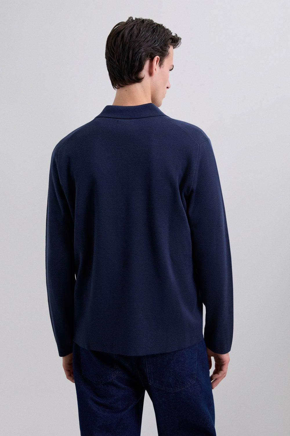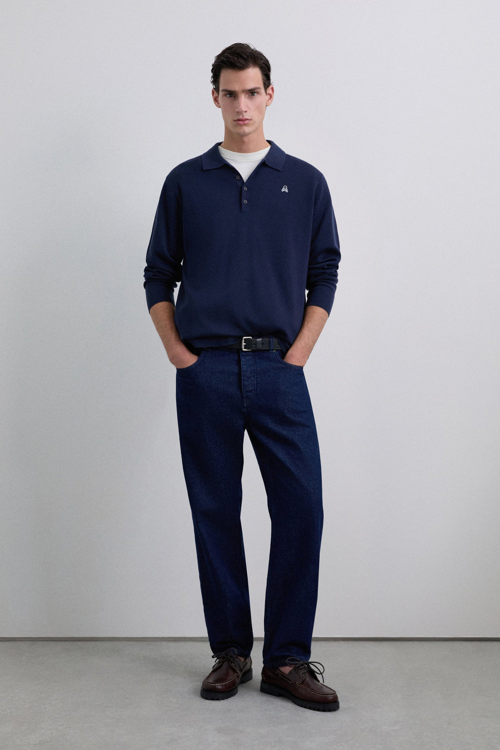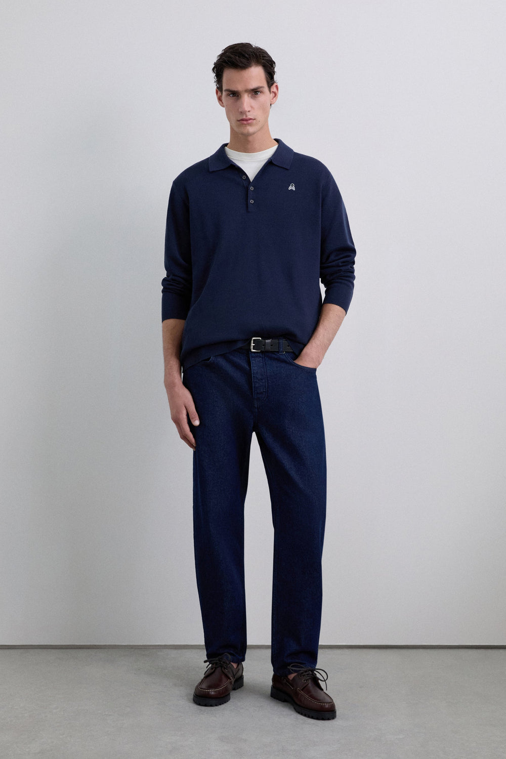 Polo shirt sweater made of a wool blend. Regular fit. Long sleeves. Contrast logo patch on the chest.