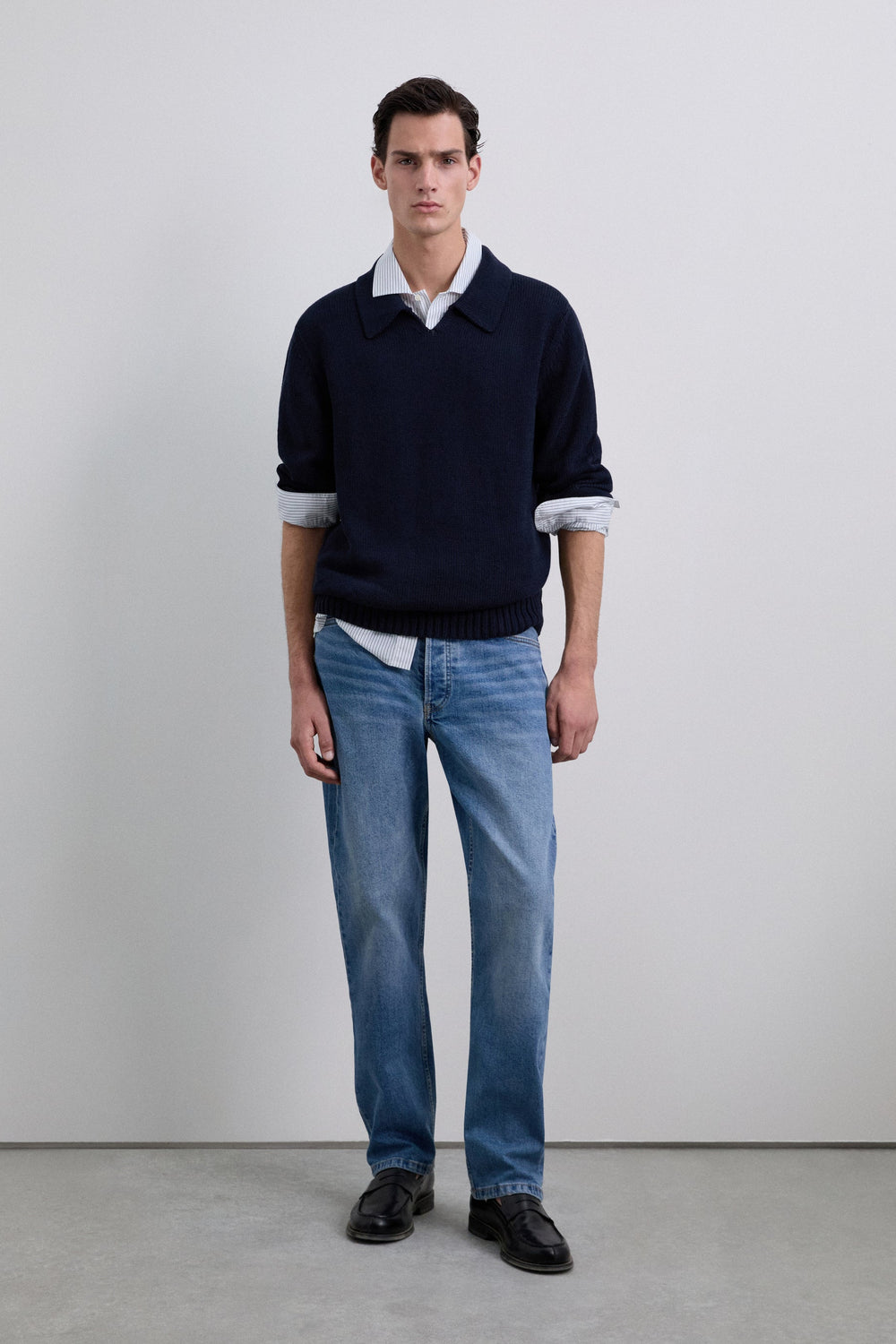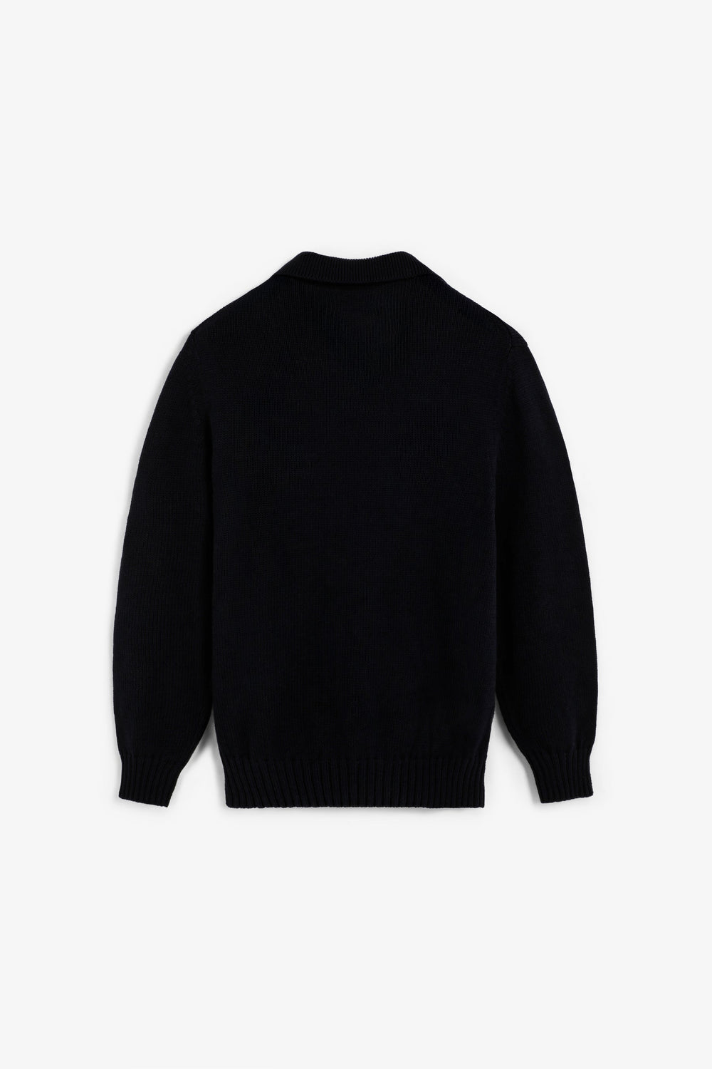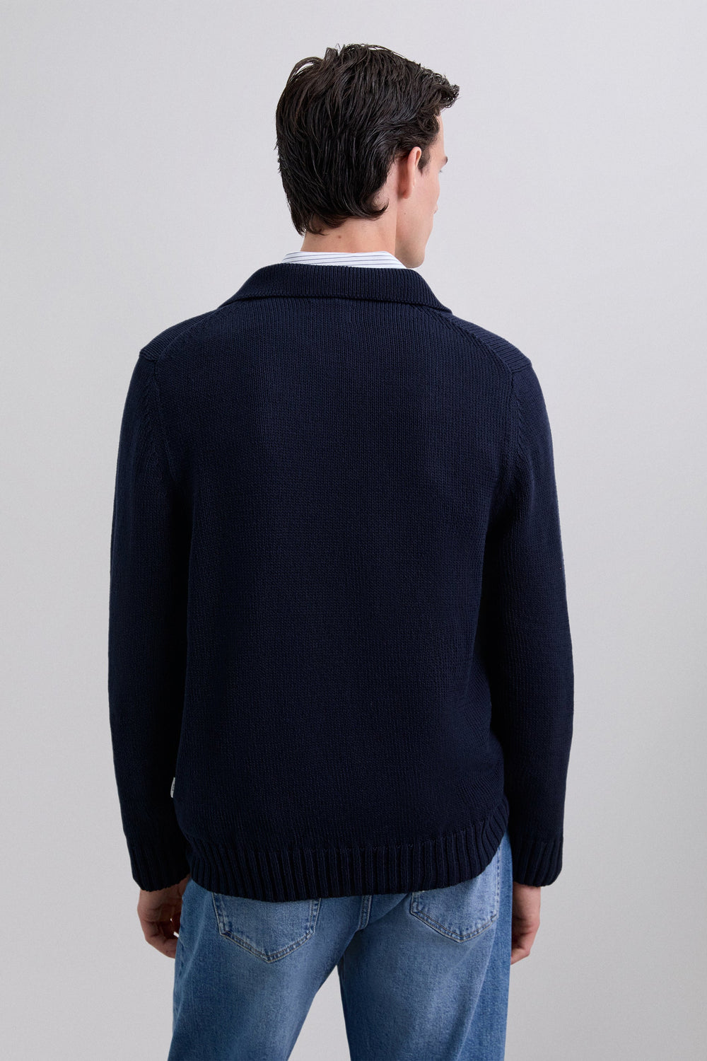 Knit sweater made of 100% BCI cotton. Polo shirt-style collar. Long sleeves. Ribbed trim.