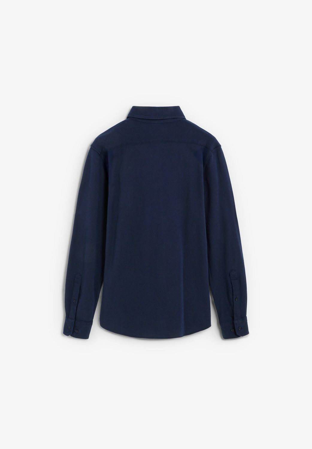 Piqué knit shirt made of 100% BCI cotton. Regular fit. Front button fastening. Long sleeves with buttoned cuffs. Matching embroidered skull on the chest.