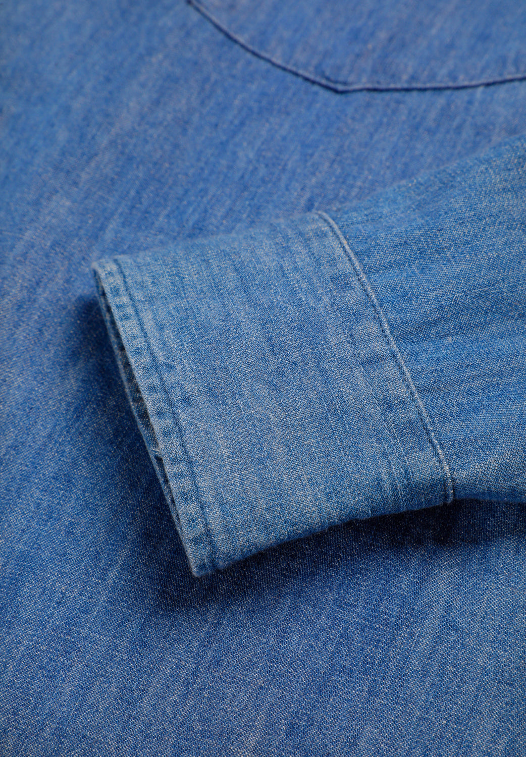 Denim shirt made of 100% BCI cotton. Regular fit. Shirt collar. Button-up front. Long sleeves. Buttoned cuffs. Chest pocket. Embroidered logo detail on the placket.