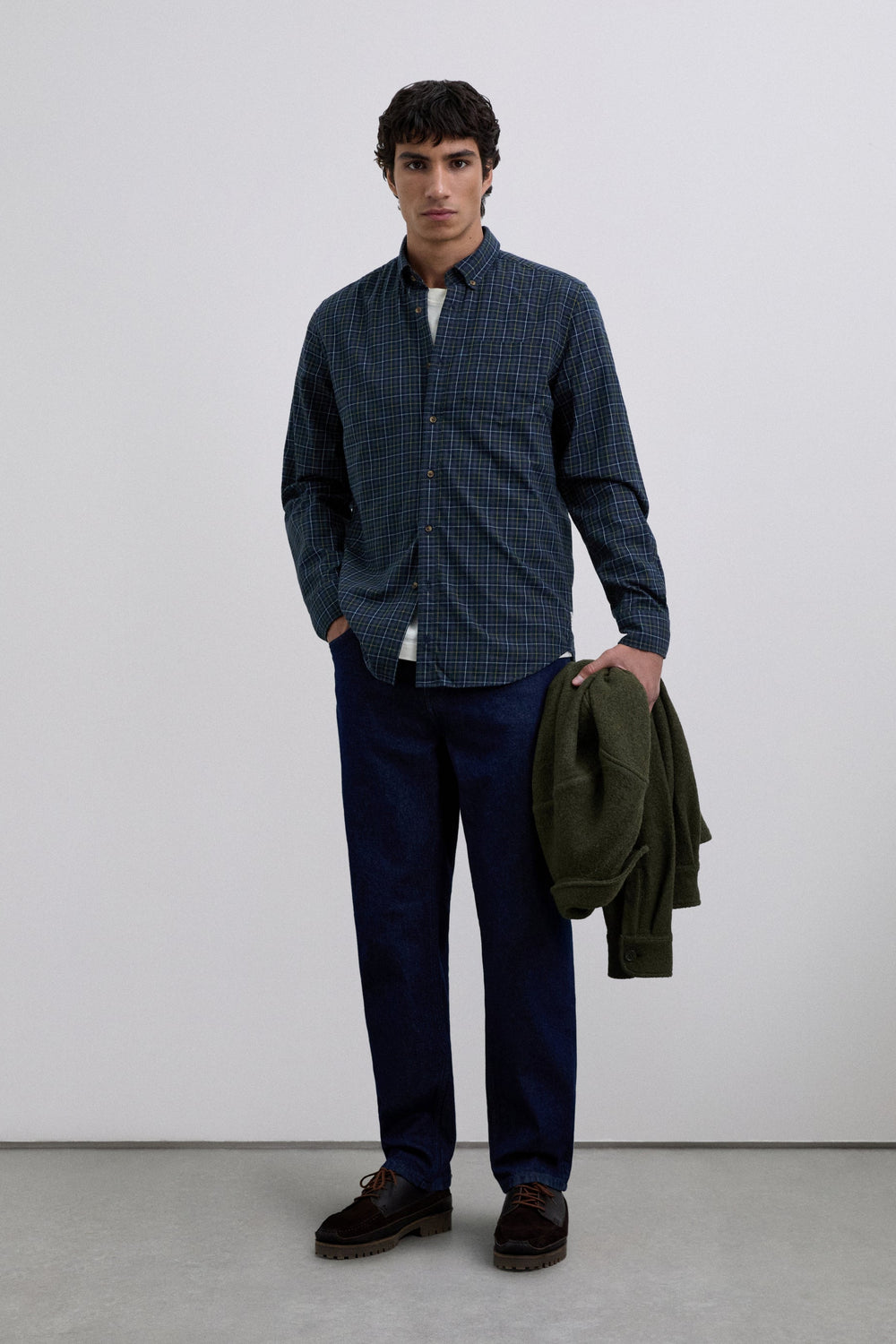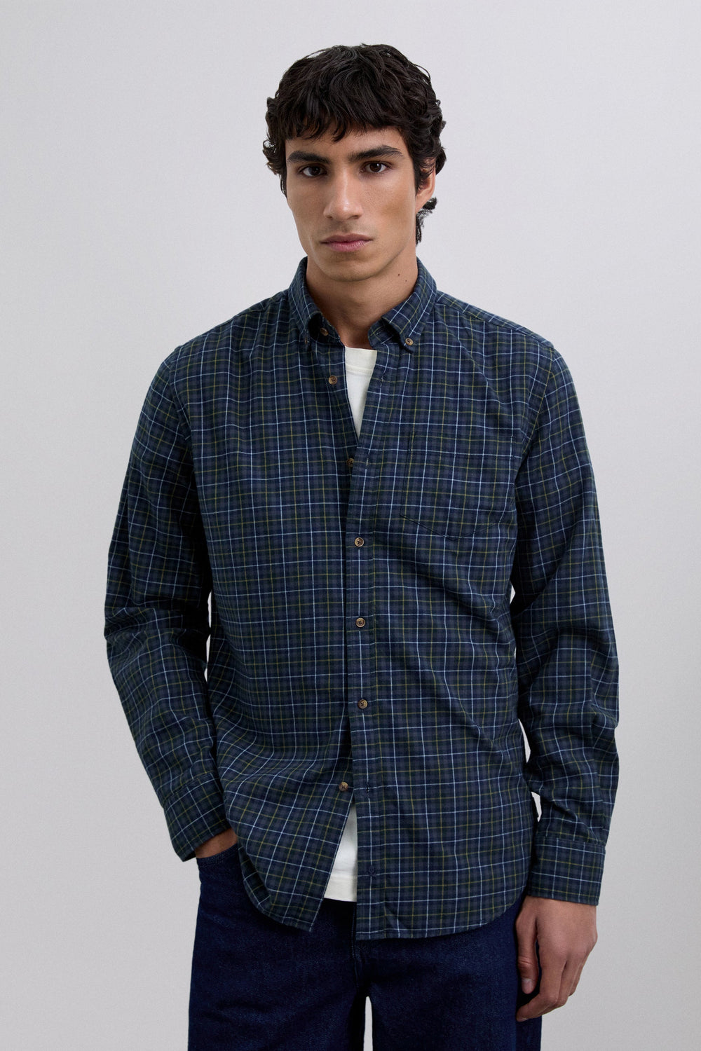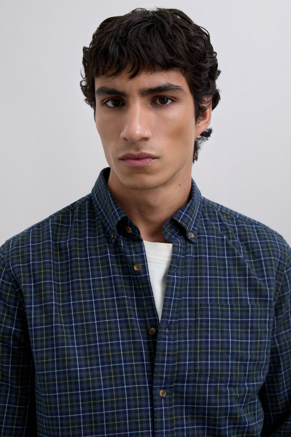 Shirt made of 100% BCI cotton. Tartan print. Regular fit. Buttoned collar. Long sleeves. Buttoned cuffs. Chest pocket.