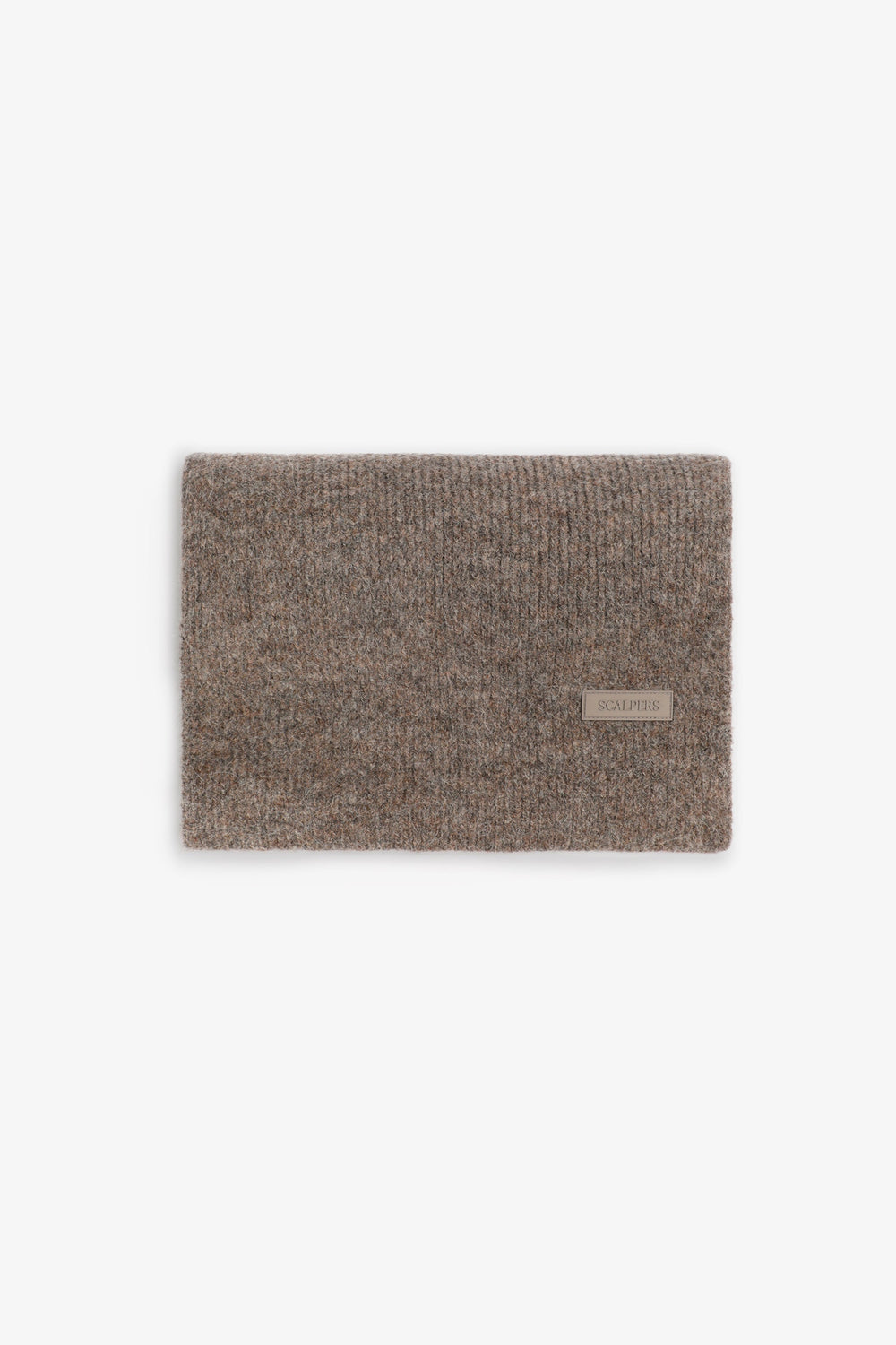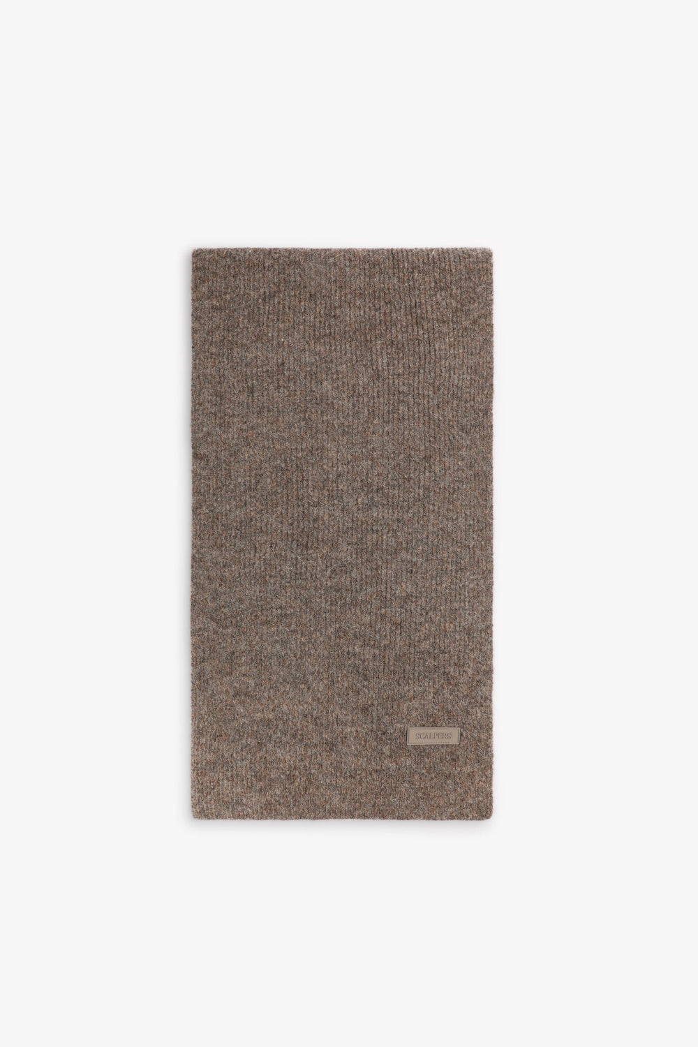 Scarf made of a wool and alpaca blend. Matching rubberised logo detail.