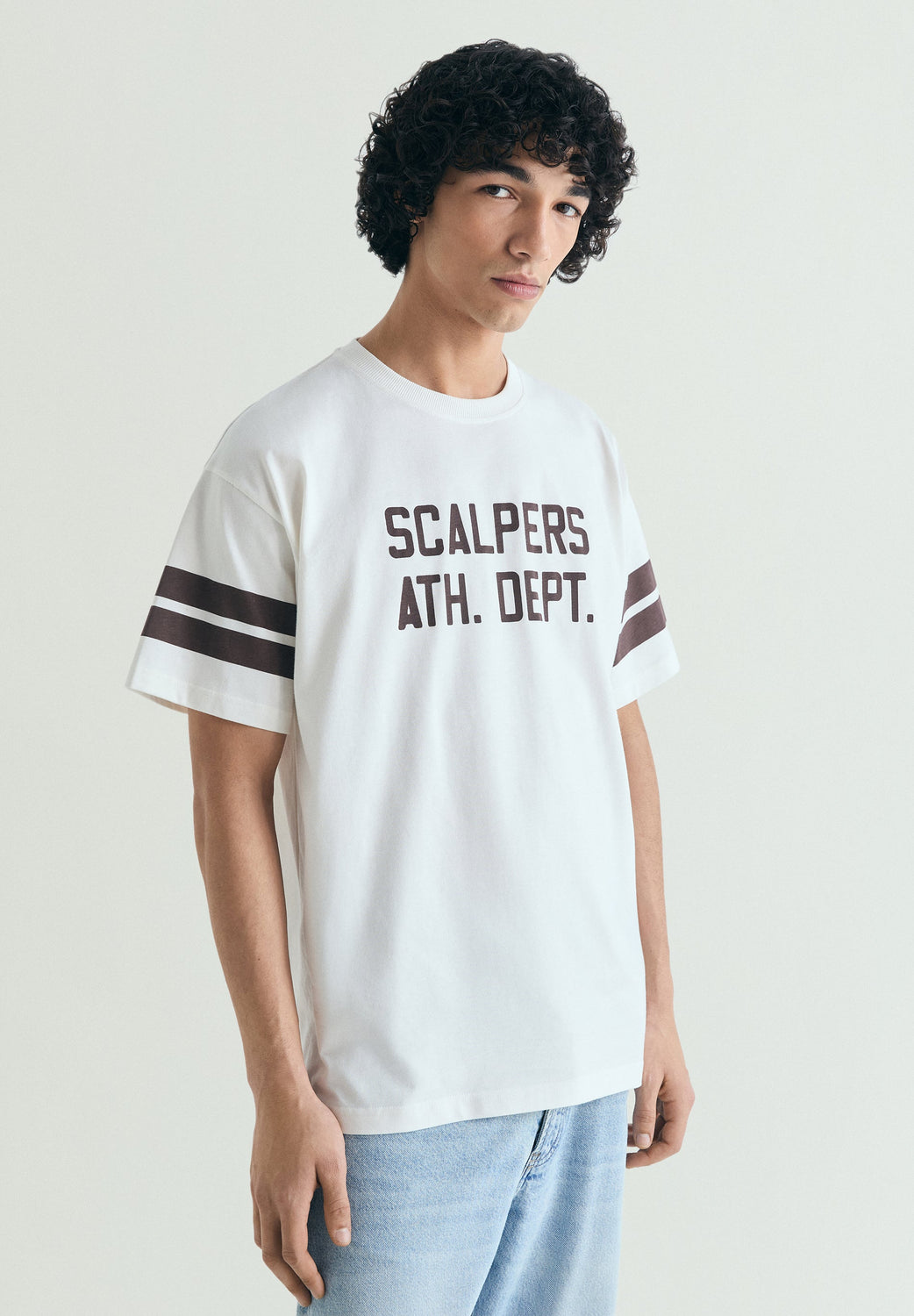 T-shirt made of 100% BCI cotton. Short sleeve. Ribbed round neck Boxy fit. Contrast printed graphic on the front and sleeves.